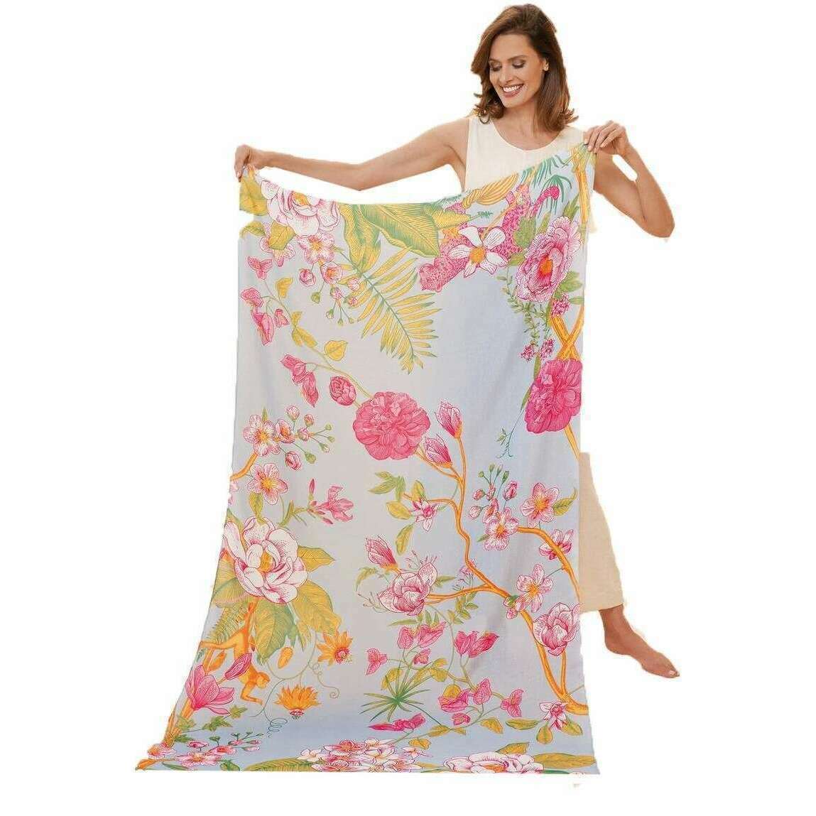 This women's printed floral jungle scarf by the brand Powder is made from 100% polyester and is showcased in purple. It measures 184cm(height) x 100cm(width). Also the lavender scarf is designed in a unique pattern, It is recommended to cool hand wash only. do not leave garment in suds. do not bleach. tumble dry, low. do not iron and do not dry clean to keep this scarf in good condition. All the scarves come complete with powder tags. The Powder Printed Floral Jungle Scarf - Lavender has a beautiful floral jungle look which is filled with lovely florals and some jungle animals. This scarf gives you that free spirit and elegant look.