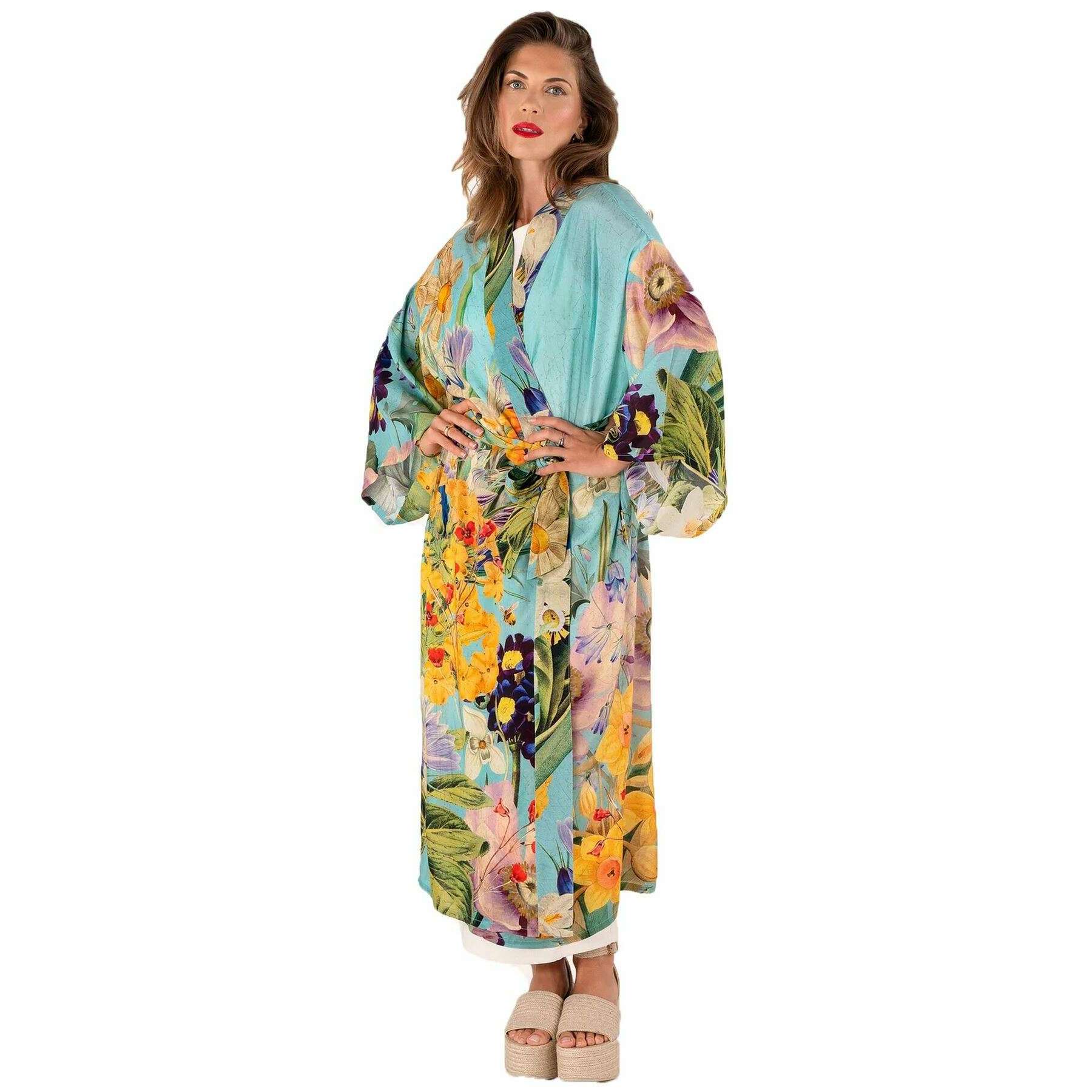 Powder Spring Flora Kimono Gown - Blue/Green/Yellow