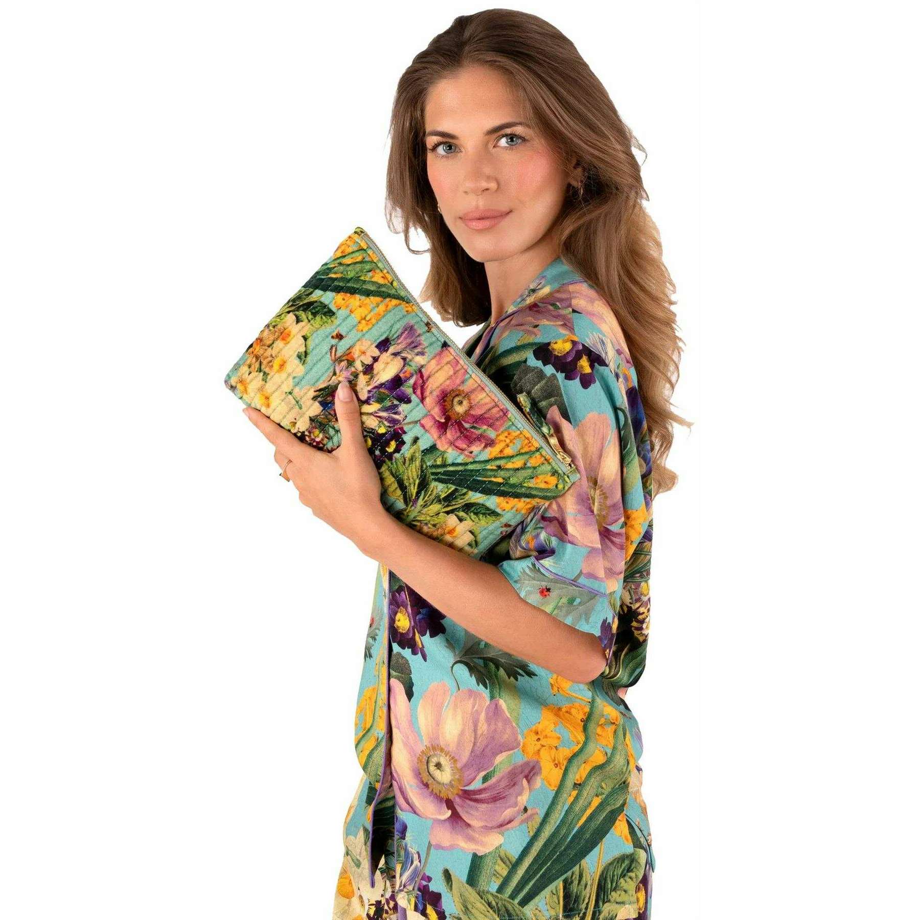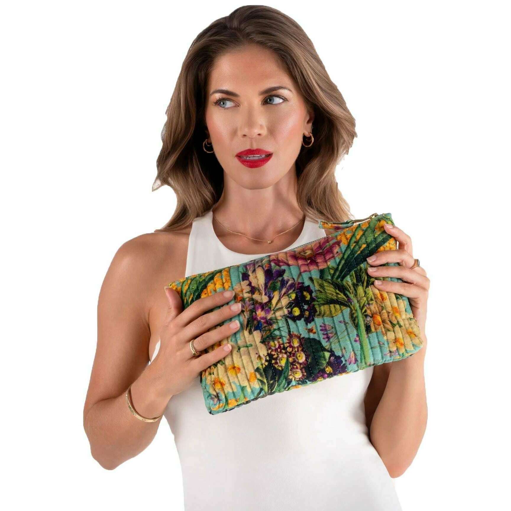Powder Spring Flora Quilted Velvet Zip Pouch - Blue/Beige/Green
