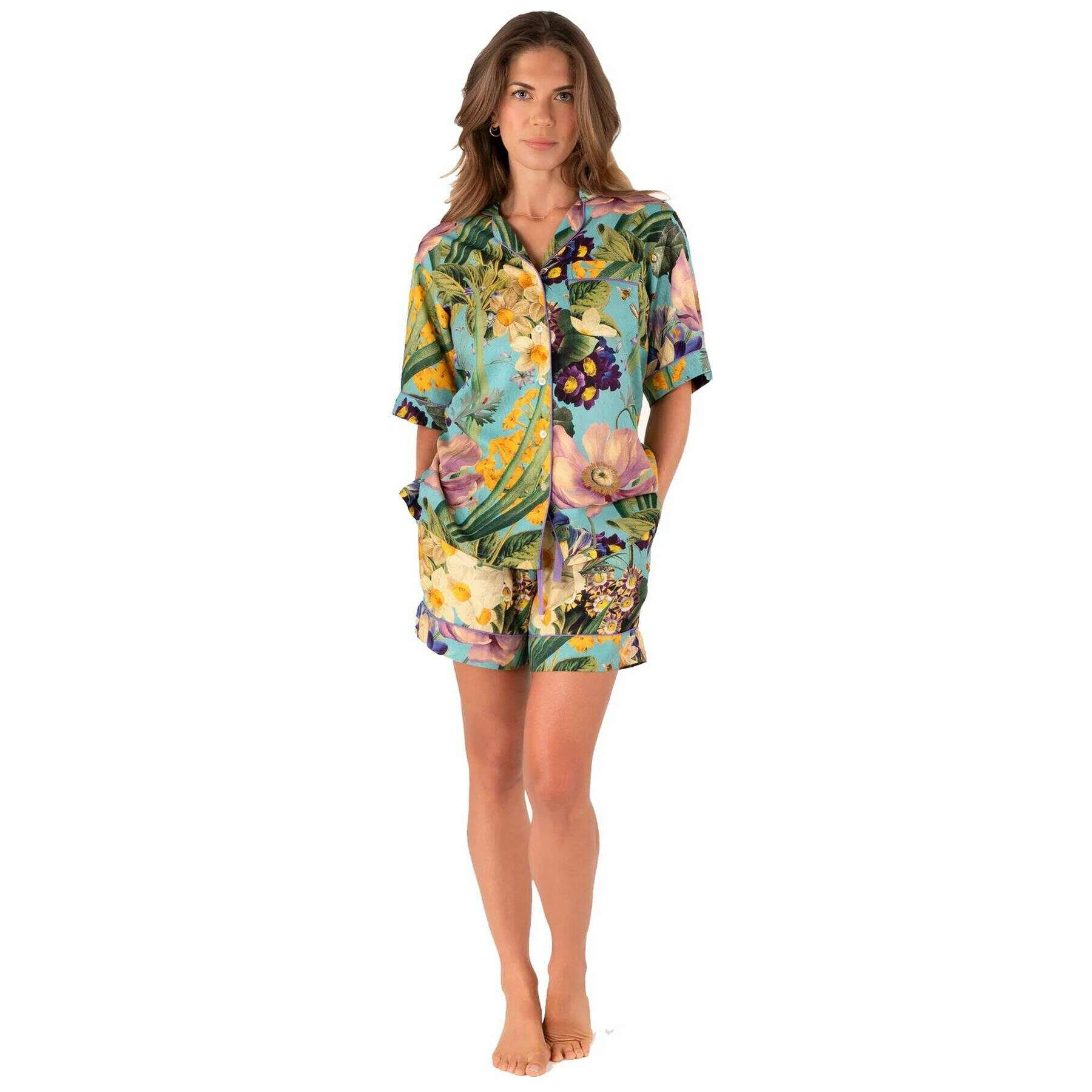 Powder Spring Flora Short Pyjamas - Blue/Green/Yellow