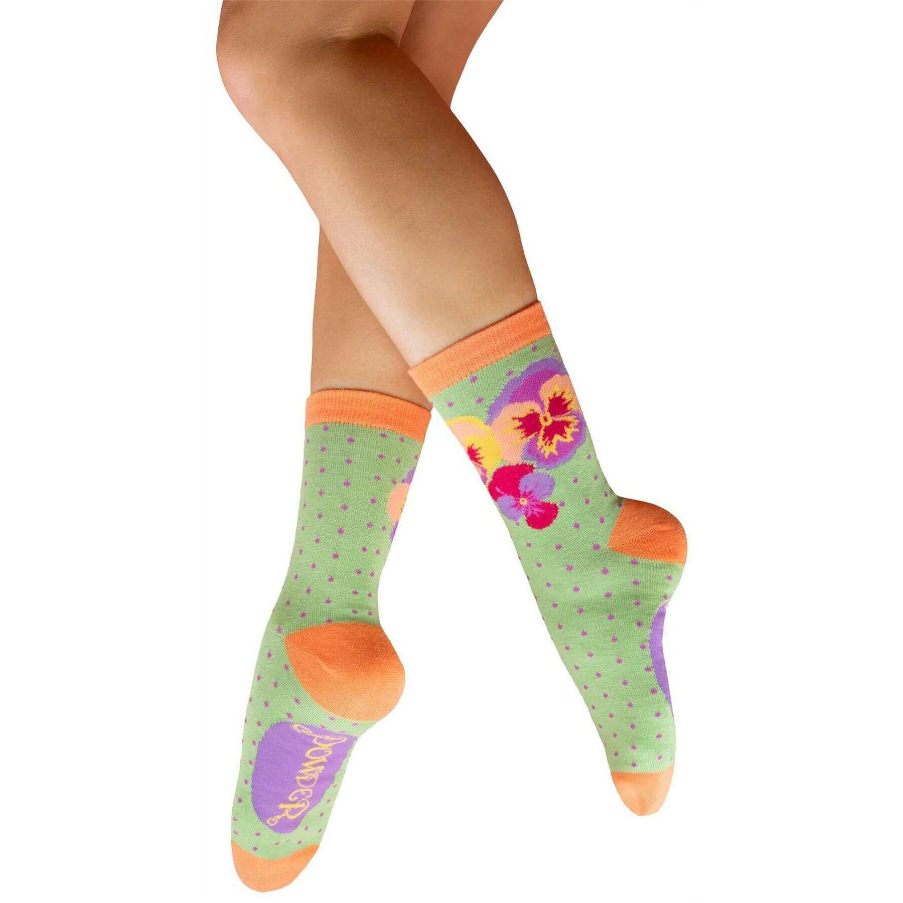 Powder Spring Pansies Ankle Socks - Green/Orange/Purple