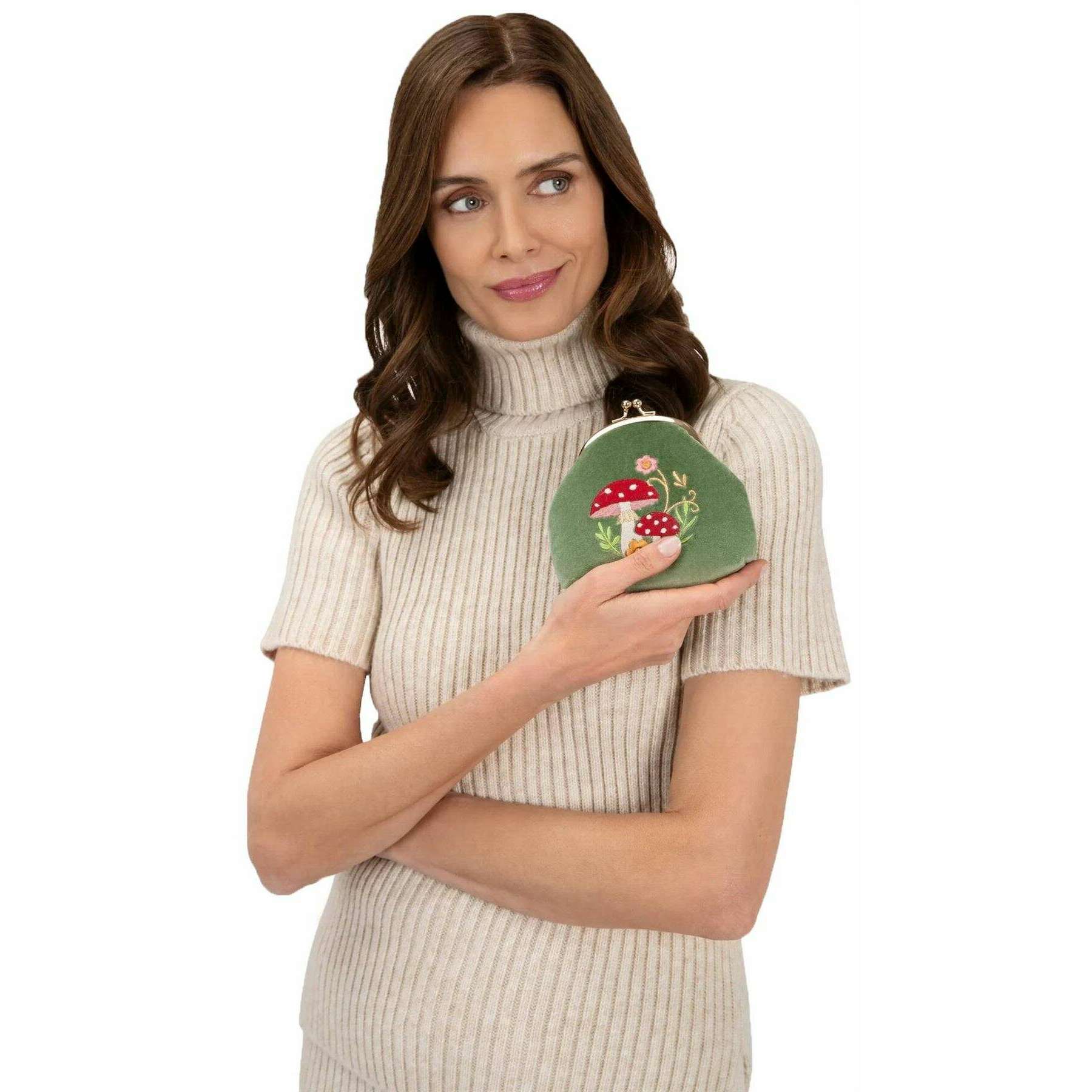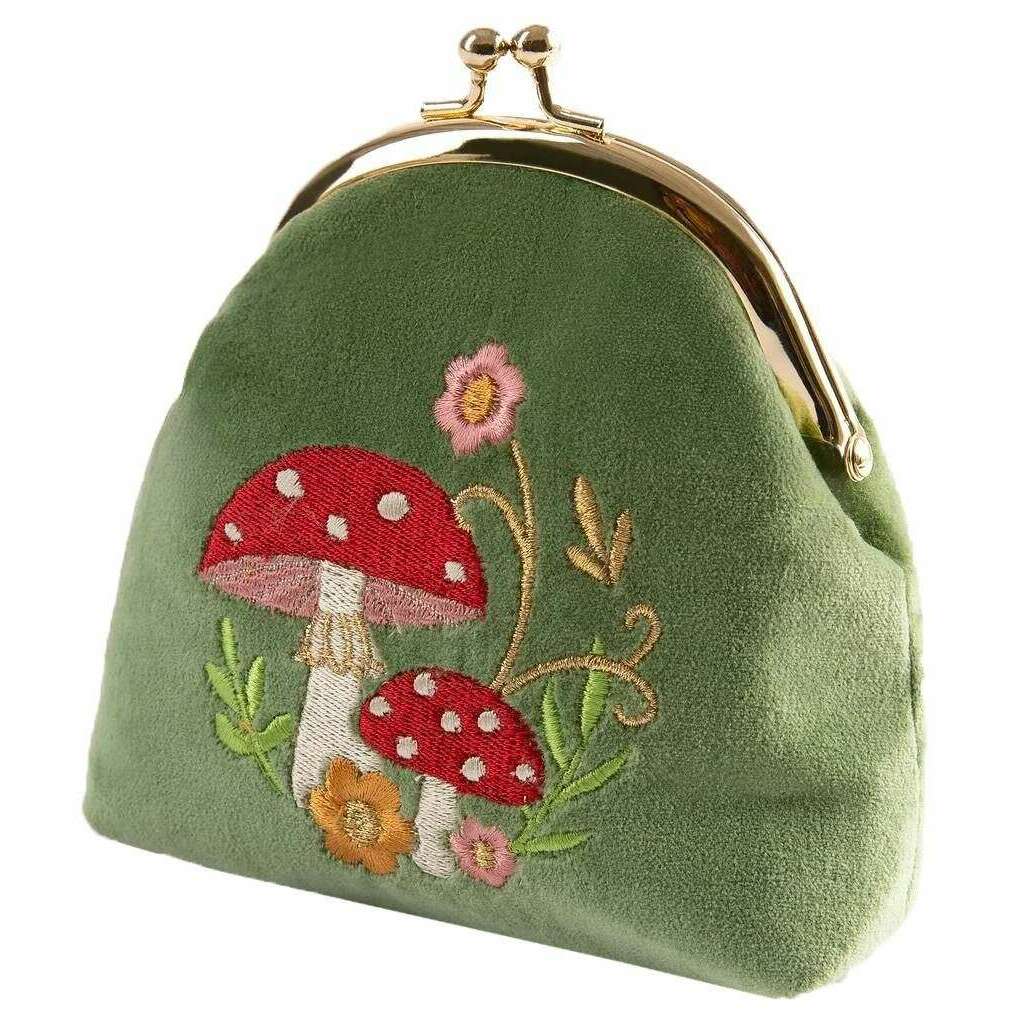 Powder Toadstools Velvet Coin Purse - Sage Green