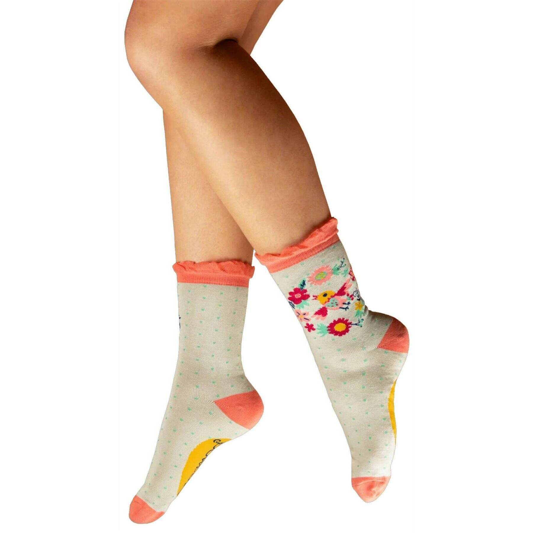 Powder Tweety Wreath Ankle Socks - Coral/White/Yellow