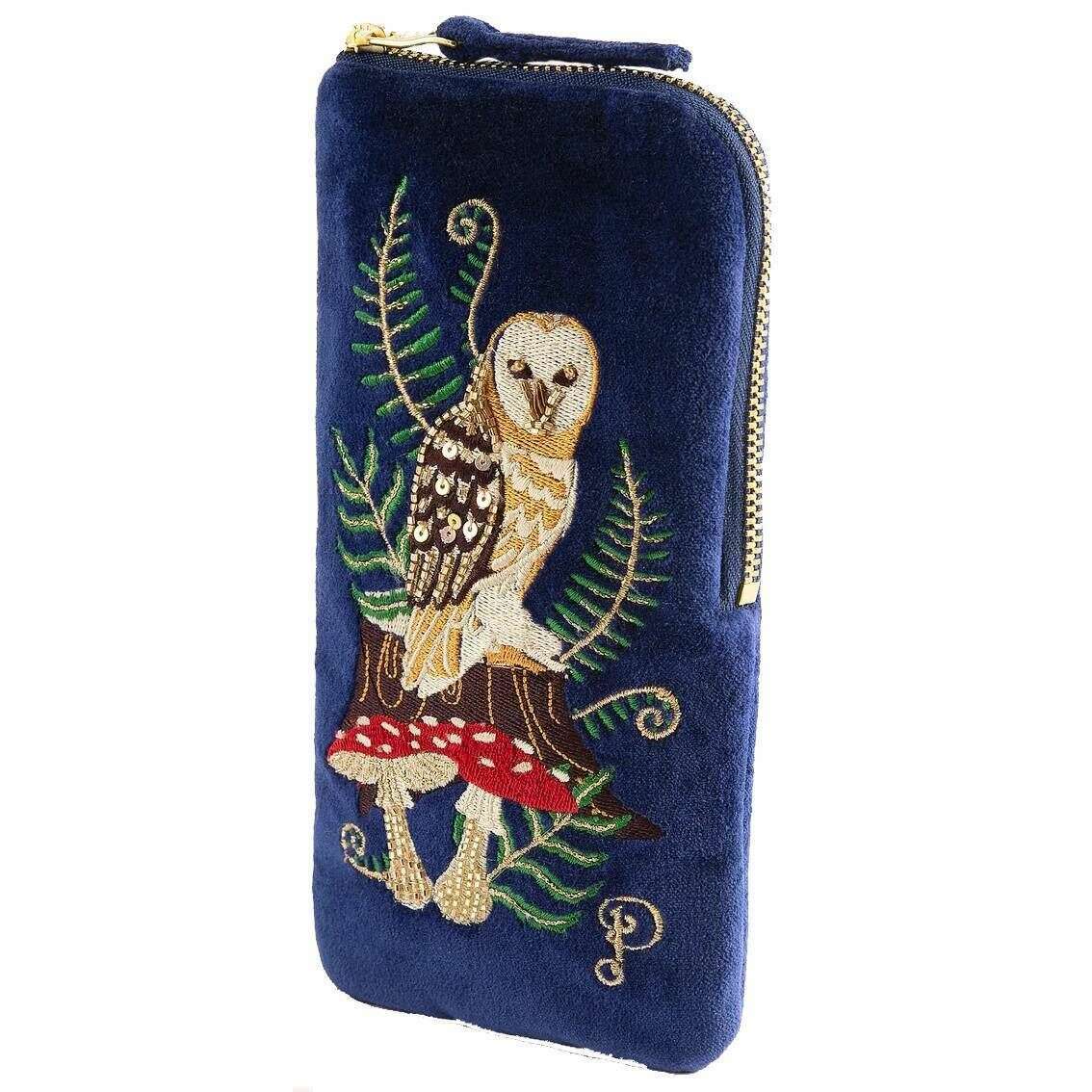 Powder Woodland Owl Velvet Sunglasses Pouch - Navy