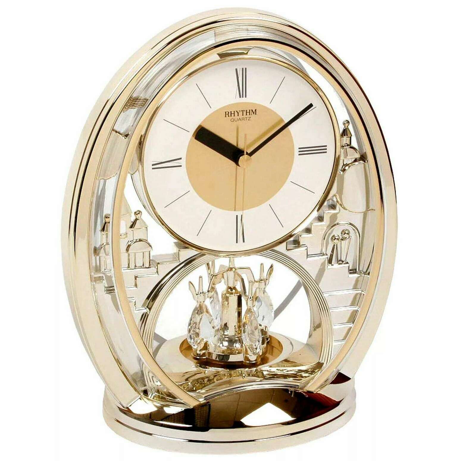 Rhythm Gilt Oval Rotating Pendulum Cont Mantel Clock - Gold