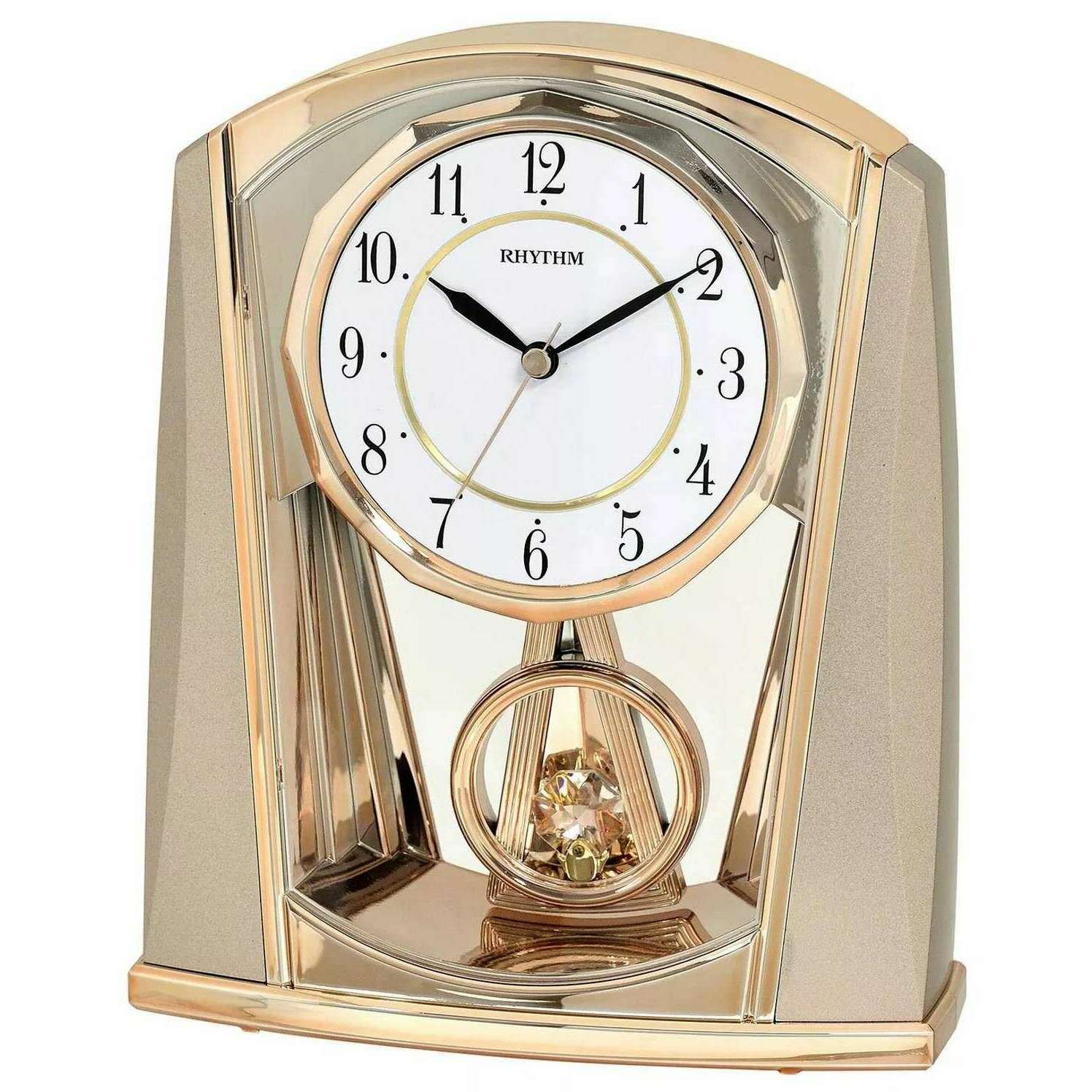 Rhythm Pendulum Contemporary Mantel Clock - Gold