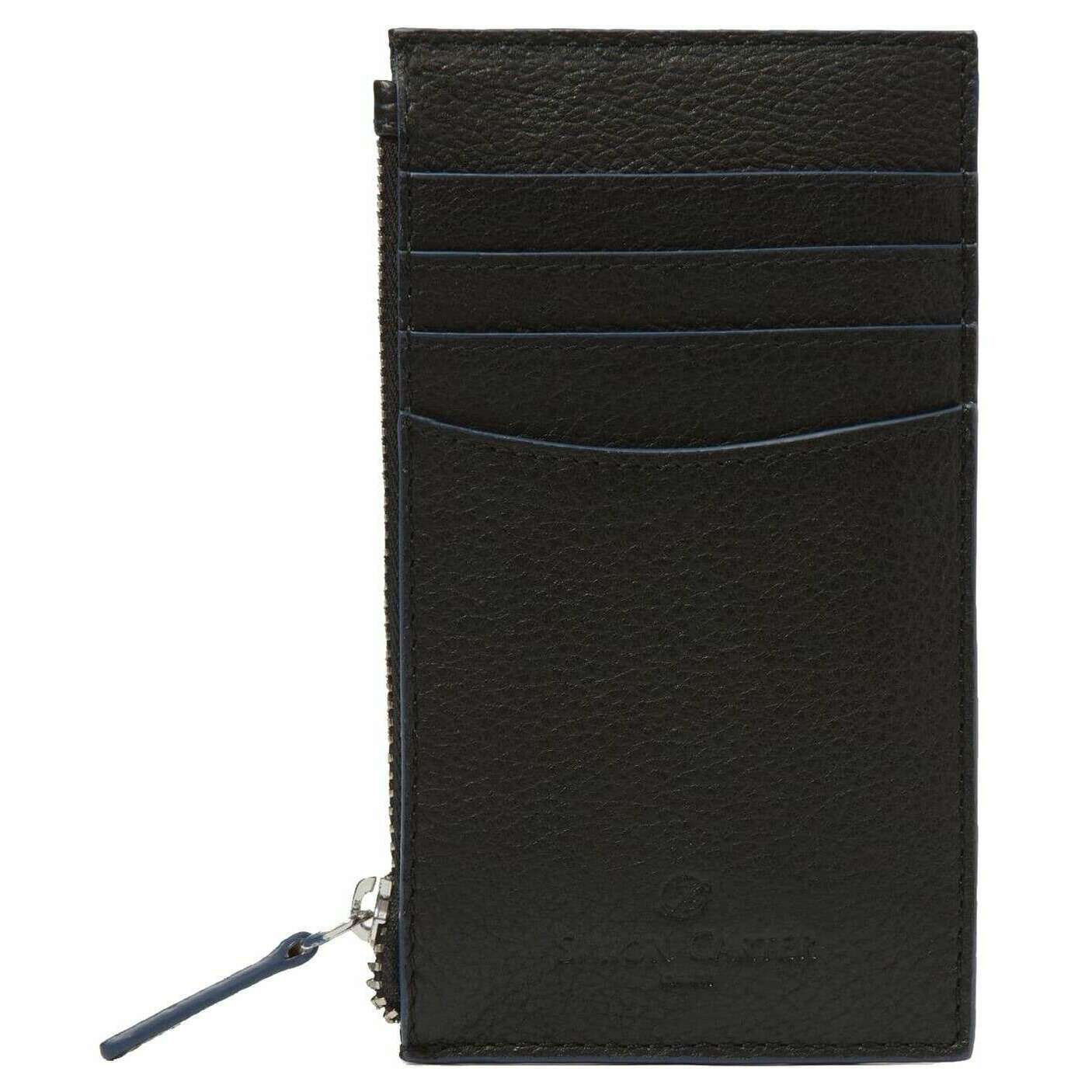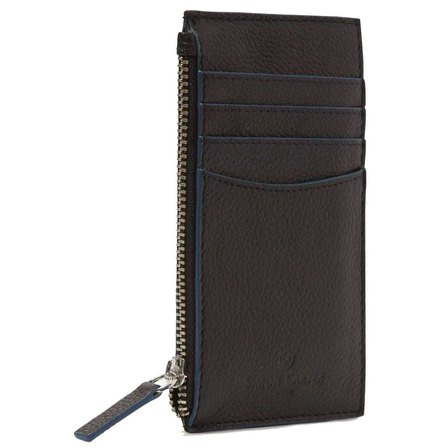 Simon Carter Contrast Edge Zip Credit Card Wallet - Black/Blue