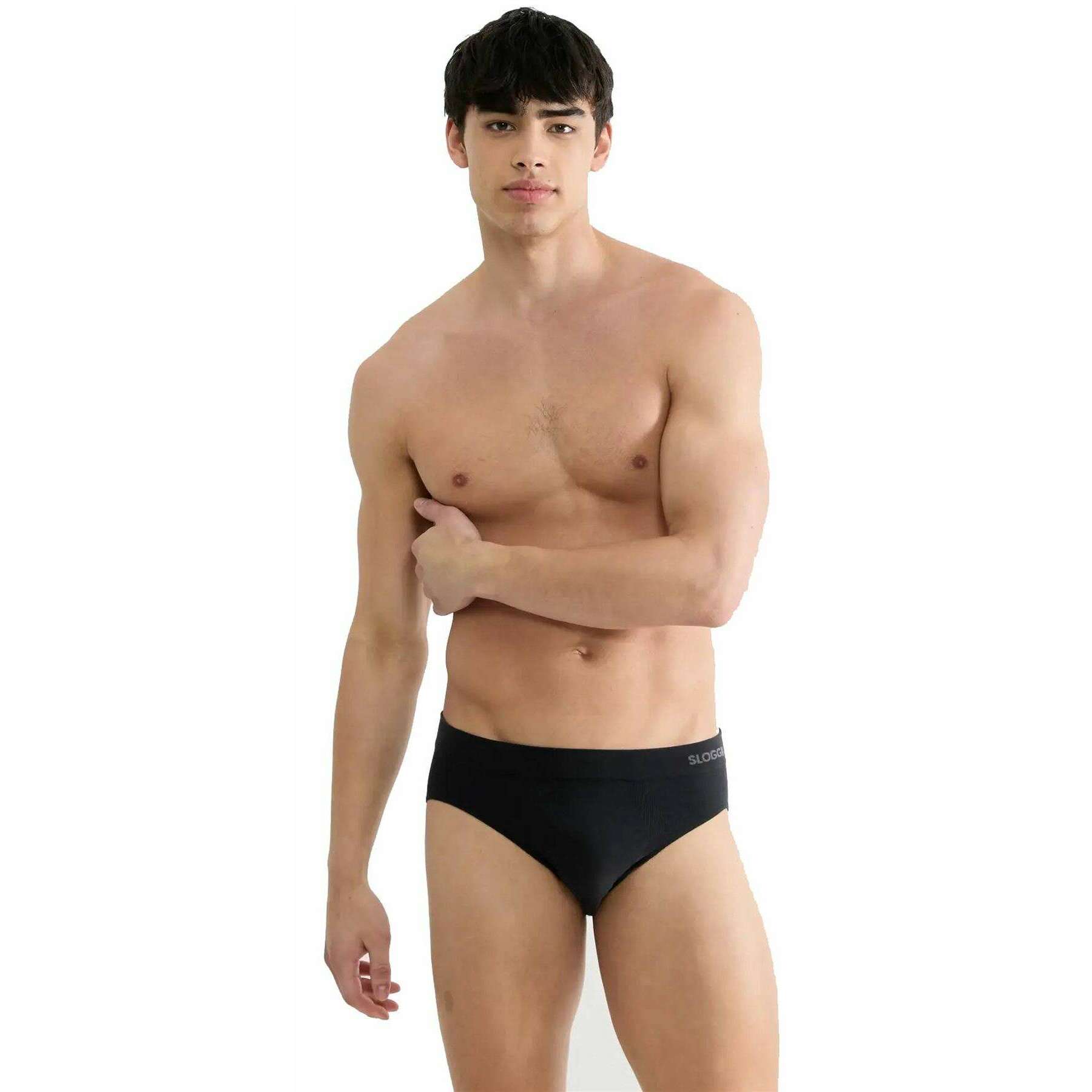 This men's go smooth 2 pack brief has been made from 72% cotton, 21% polyamide and 7% elastane, featured in a black colour and is from the brand Sloggi. Also the black underwear is designed in a plain pattern, It is recommended to machine wash at 30 degrees to keep this underwear in good condition. 2 pack underwear is value for money ensuring they are a good buy, All the underwear comes complete with sloggi packaging. The Sloggi GO Smooth 2 Pack Brief - Black feature a seamless tubular knit for a smooth and irritating free wear. These underwear have been crafted with eco-certified organic cotton offers great sustainability for environmental help and optimal comfort with the breathable and high-quality material. Offering support is the engineered fine rib knit detail on the pouch for extra comfort, perfect for an everyday wear.