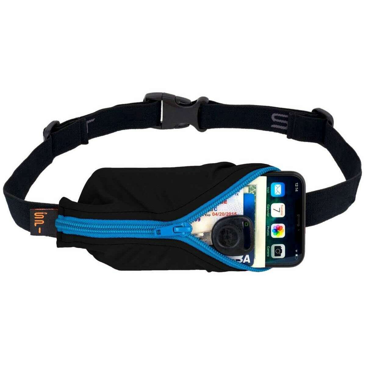 This unisex large pocket running belt by the brand SPIbelt is made from elastic and is showcased in black. All the belts come complete with spibelt tag. The SPIbelt Large Pocket Running Belt - Black/Turquoise is perfect for a light jog or a full-on marathon! This fitness belt comes with a low-profile pocket to hold all your exercise accessories, headphones, keys, ID, and credit cards safe, secure, and close at hand. It expands to carry what you need and fits all phone sizes. Bounce free, it can be worn under clothes or on top and the comfortable, soft elastic prevents any chaffing.