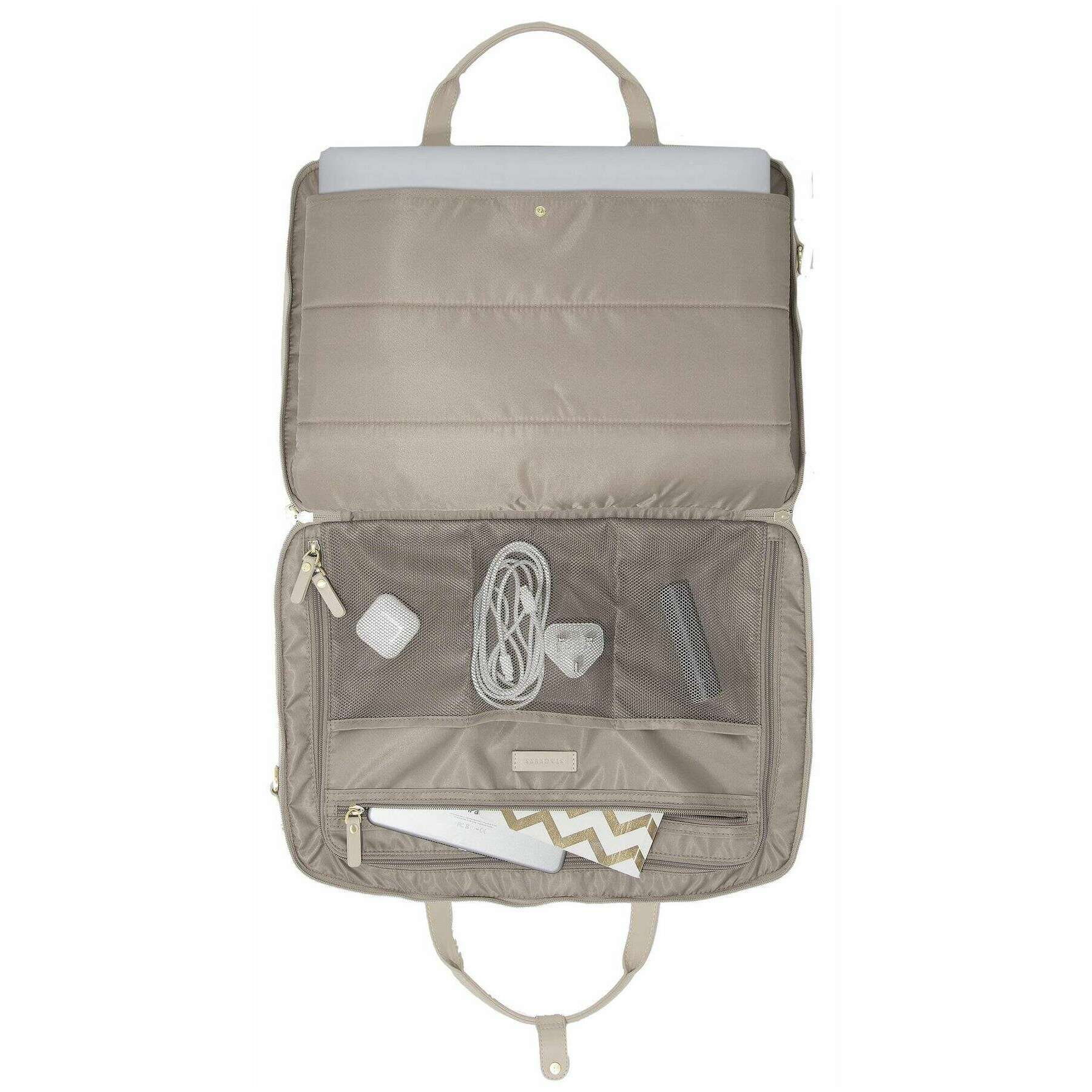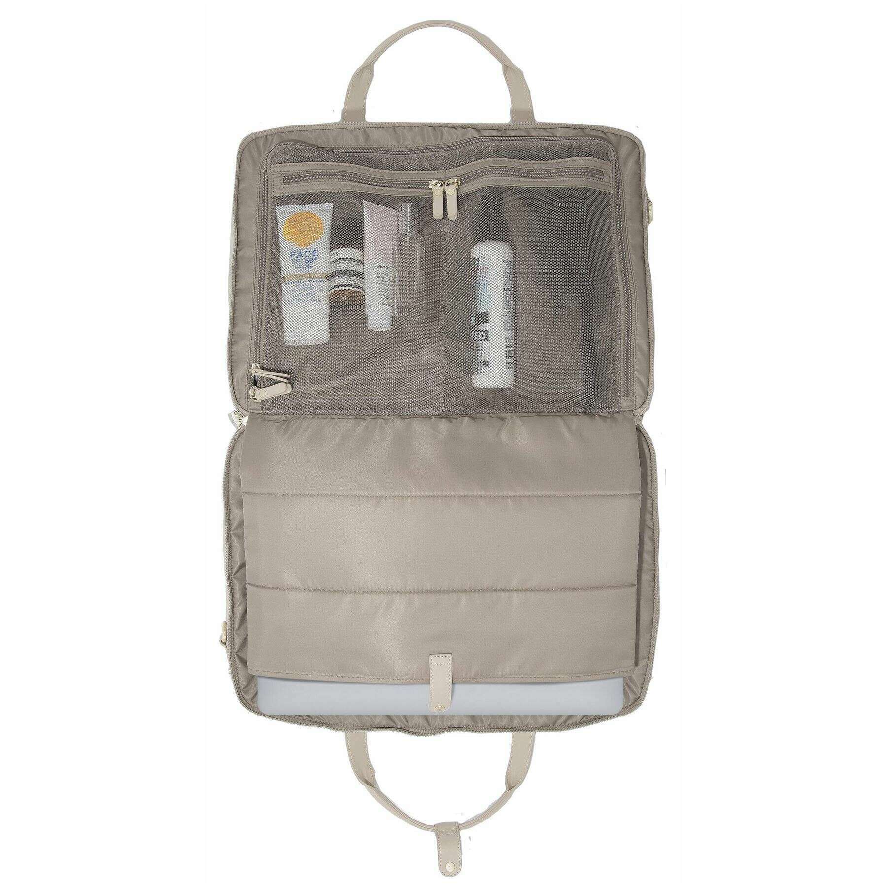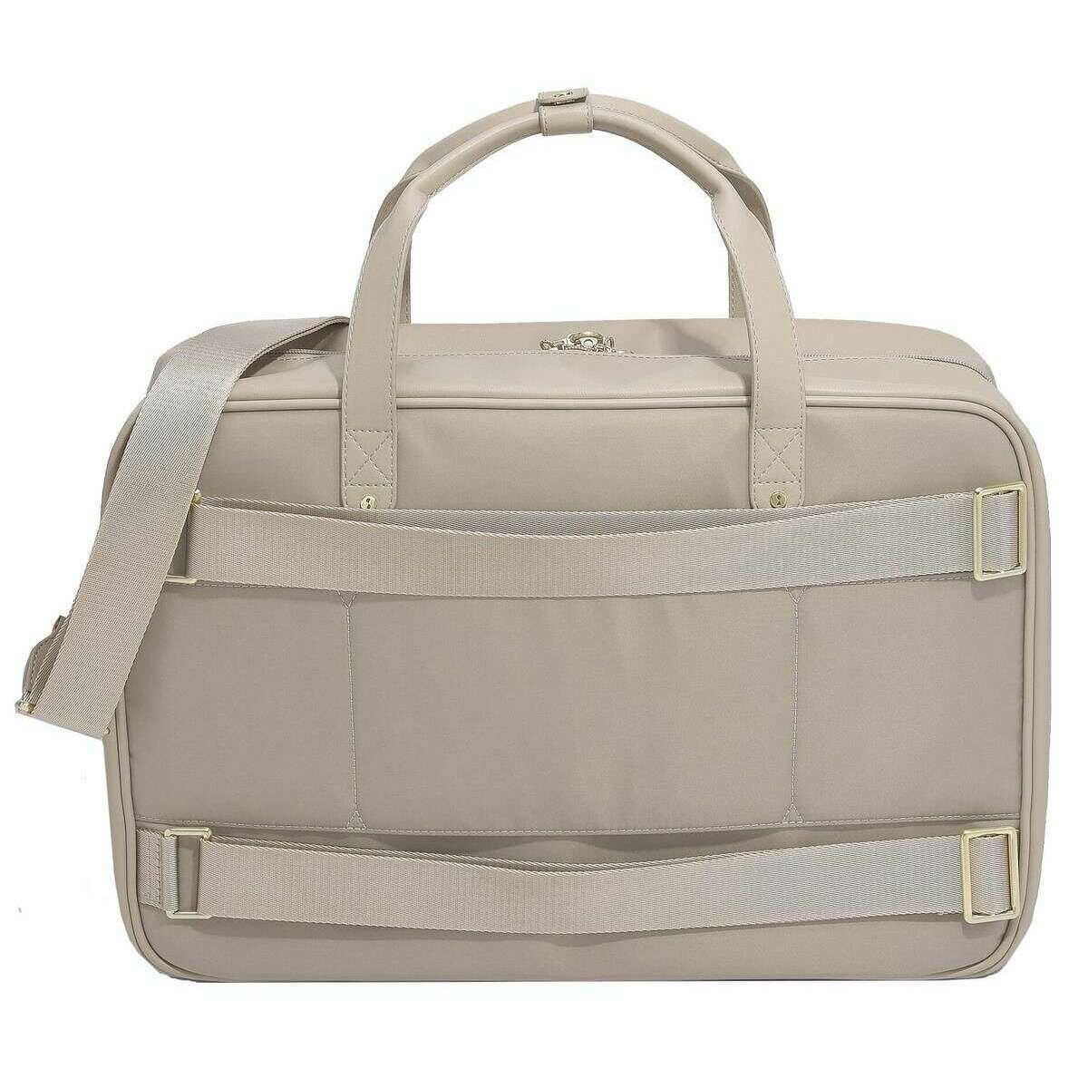 Using beige faux leather and velvet, this cabin bag by Stackers is perfect for women and a must have. It measures 33.5cm(height) x 22.5cm(width) x 46cm(depth). All the bags come complete with stackers packaging. The Stackers Cabin Bag - Clay Beige is perfect for on the go use. This beige cabin bags features a laptop pocket, two large zipped compartments and a range of smaller pockets. Complete with shoulder straps, backpack straps and a zip for added security.