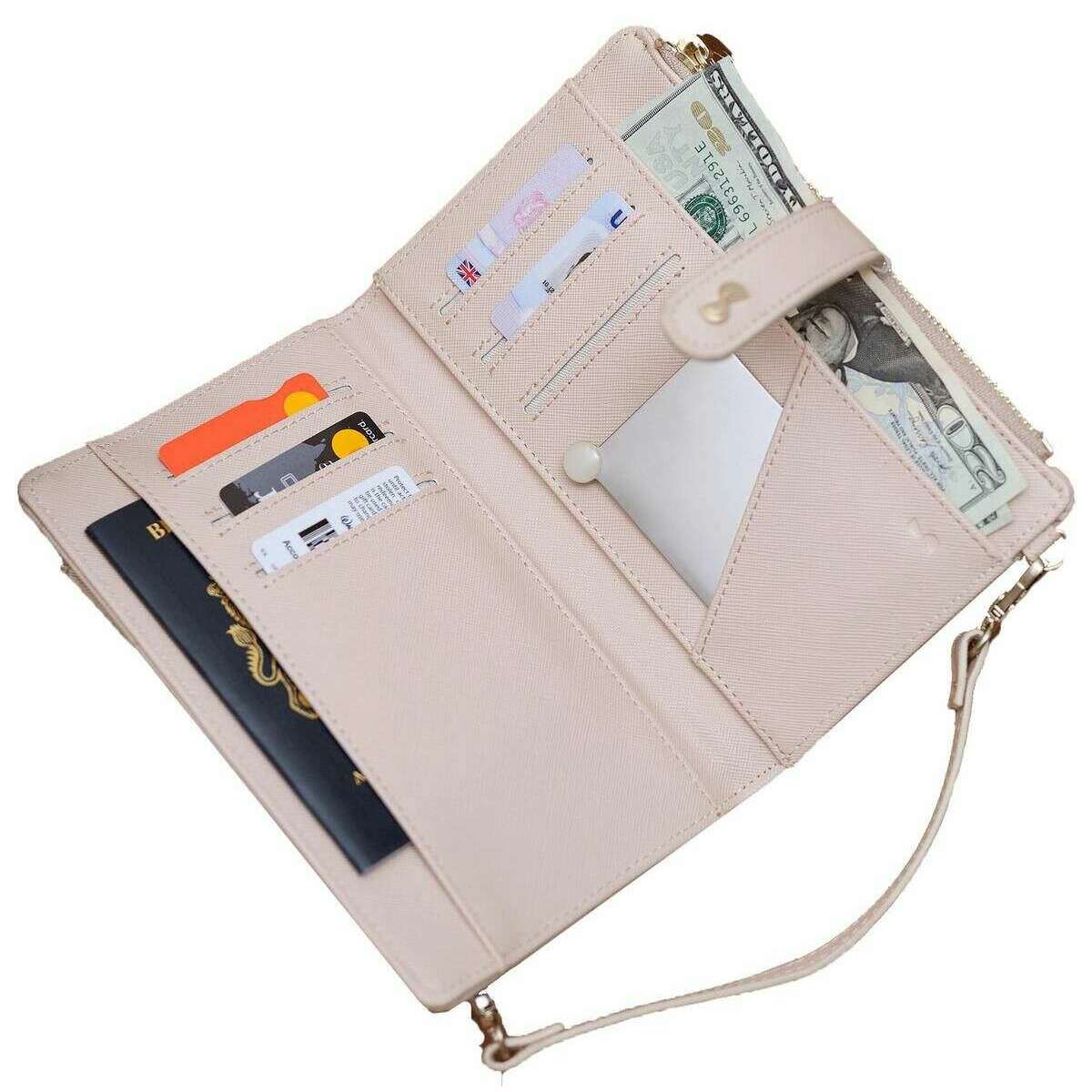 • External Phone Pocket , 6 Card Slots , Cosmetic Mirror , Removable Zipped Coin Pocket , Removable Wrist Strap , Popper Fastening