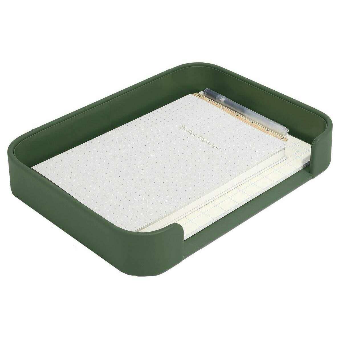 Brought to you by the brand Stackers, this emerald green women's letter tray is made from faux leather. It measures 5cm(height) x 32.5cm(width) x 24.5cm(depth). All the desk accessories come complete with stackers packaging. The Stackers Letter Tray - Emerald Green features a beautiful green design. This letter tray is perfect for storing paper or stationary and can be kept on a desk or in a drawer!