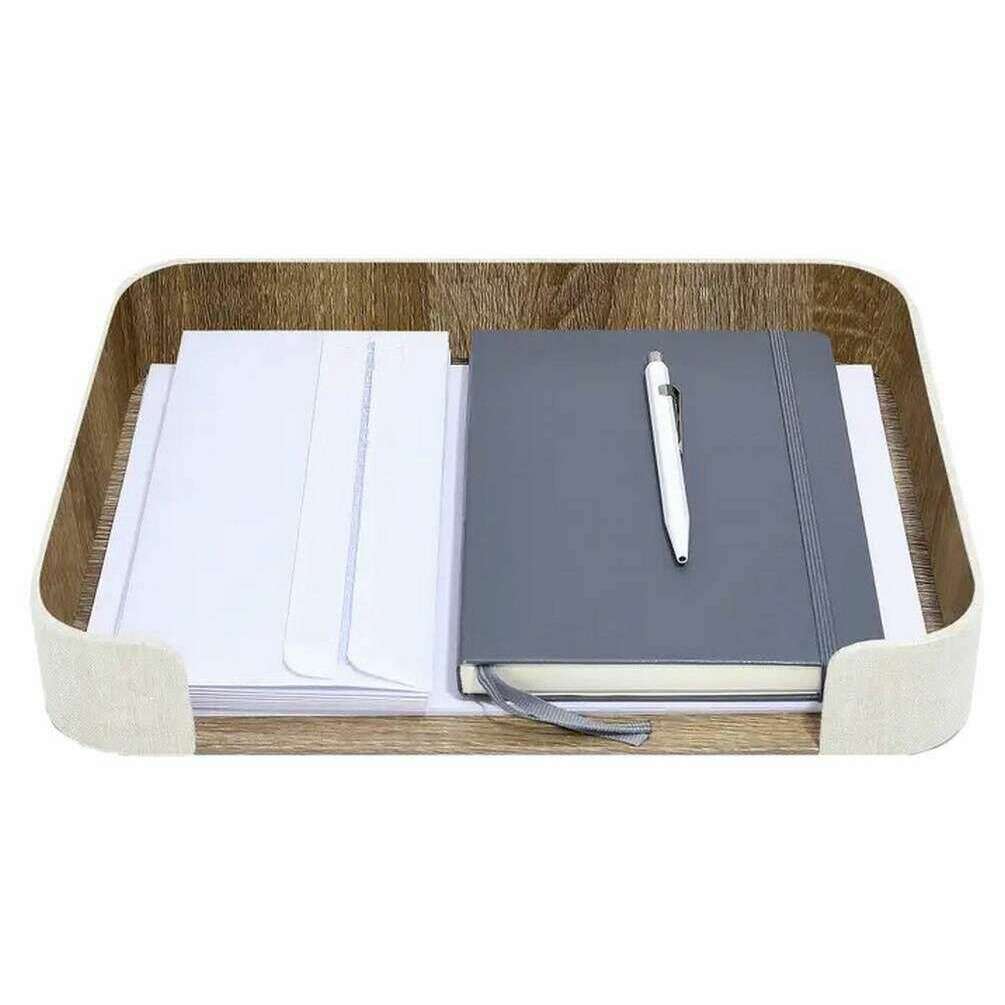 Using beige faux leather, this letter tray by Stackers is perfect for women and a must have. It measures 5cm(height) x 32.5cm(width) x 24.5cm(depth). All the desk accessories come complete with stackers packaging. The Stackers Letter Tray - Oatmeal Beige/Linen Beige features a beautiful beige design. This letter tray is perfect for storing paper or stationary and can be kept on a desk or in a drawer!
