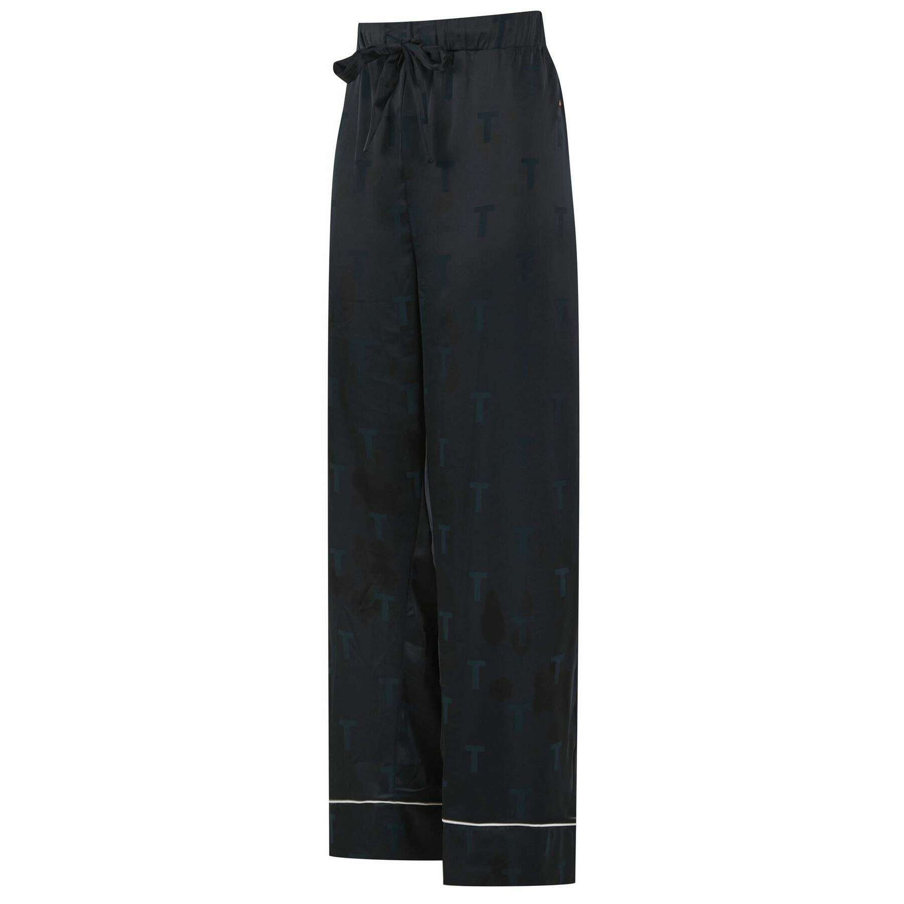 These peggy traditional pyjamas for women are fashioned by the brand Ted Baker in a navy colour and are made from 97% polyester and 3% spandex. Also the after midnight navy pyjamas are designed in a plain pattern, All the pyjamas come complete with ted baker packaging. The Ted Baker Peggy Traditional Pyjamas - After Midnight Navy feature a shiny design with the branding T all over and white piping for contrast. These pjs are the perfect pair for any woman featuring long sleeves and trousers to ensure warmth whilst having a satin finish for a breathable wear. These also feature an elasticated waistband and tie for a great fit with loose arms and legs for flow throughout. These would make the perfect gift to a girly loved one. Finished with a Ted Baker metal embellishment tag on both top and bottom.