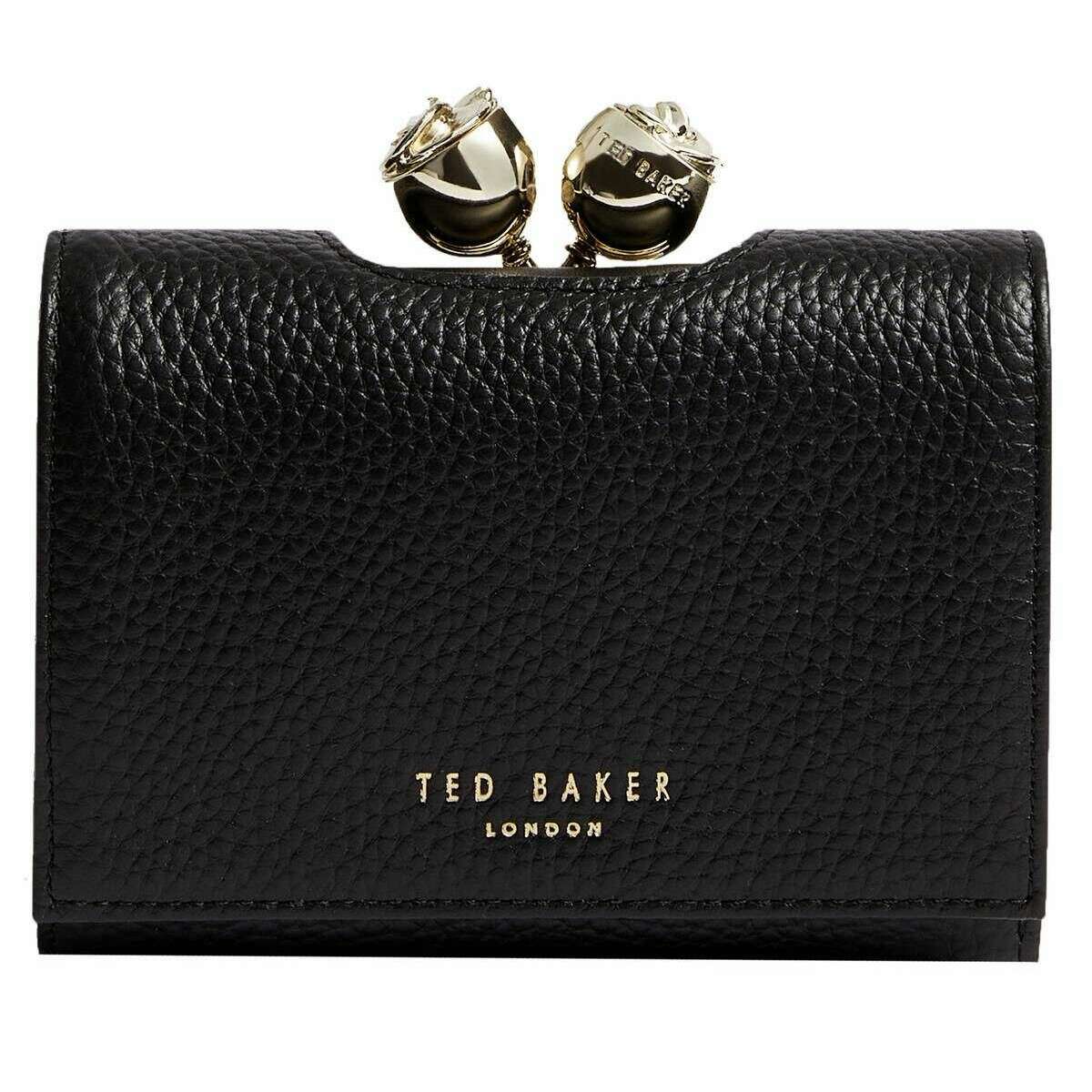 Manufactured from 100% bovine leather is this black women's roosa rose detail small leather bobble purse by the designer Ted Baker. It measures 8cm(height) x 12cm(width). All the purses come complete in a ted baker gift box. The Ted Baker Roosa Rose Detail Small Leather Bobble Purse - Black has been beautifully crafted to provide sophistication and elegance while organising your cards and cash effortlessly. A standout to this purse are the gorgeous rose bud clasps which offer feminine flair to a simple silhouette. Finished with branding on the front, this purse would make the perfect treat to yourself or a thoughtful gift.