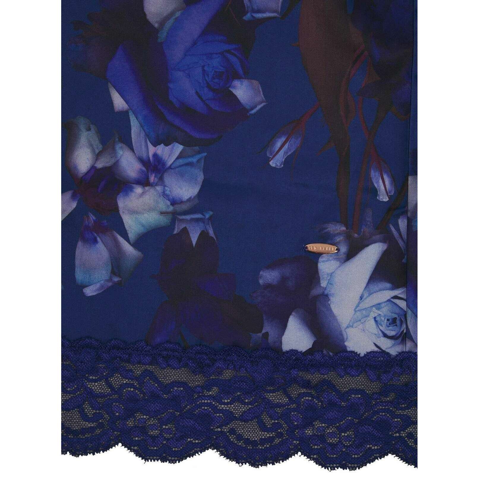 This well made women's taylor kimono robe from Ted Baker comes in a dark blue digital print colour and is manufactured from 97% polyester and 3% spandex. Also the dark blue digital print dressing gown is designed in a floral pattern, All the dressing gowns come complete with ted baker packaging. The Ted Baker Taylor Kimono Robe - Dark Blue Digital Print luxurious and sophisticated, will become a great addition to any ladies loungewear collection. Featuring a silky look with a floral design all over, a 3/4 length sleeve, lace on the sleeves and bottom and a belt combines to create a chic appeal. The soft and breathable fabric keeps you warm whilst also cool when lounging in your home. Finished with a Ted Baker metal embellishment tag.