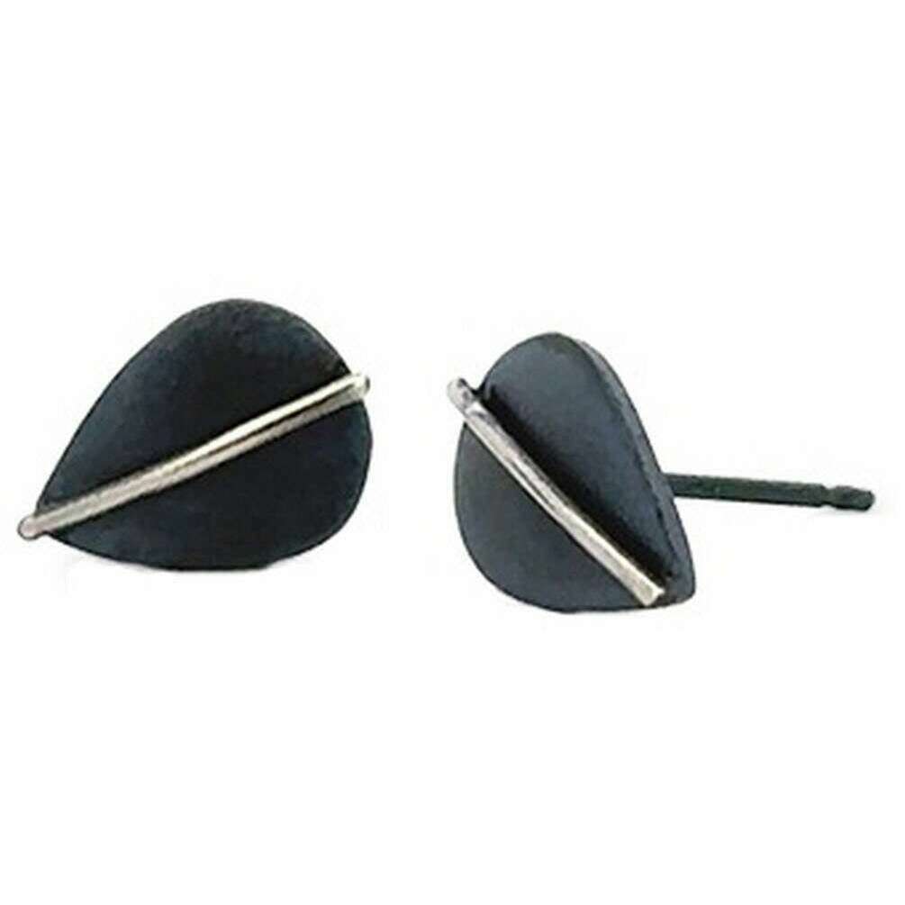 Ti2 Titanium Jungle Leaf Stud Earrings - Black