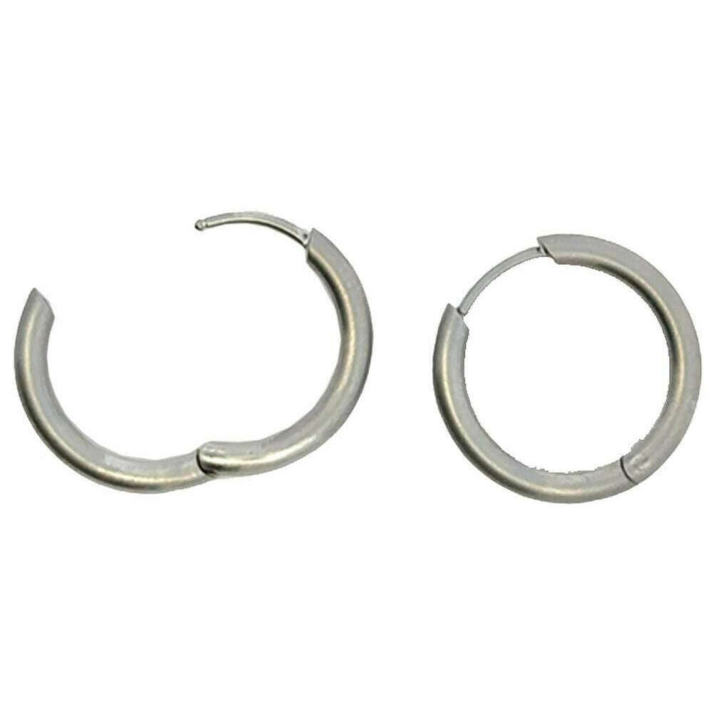 Ti2 Titanium Medium Round Hinged Hoop Earrings - Natural Silver
