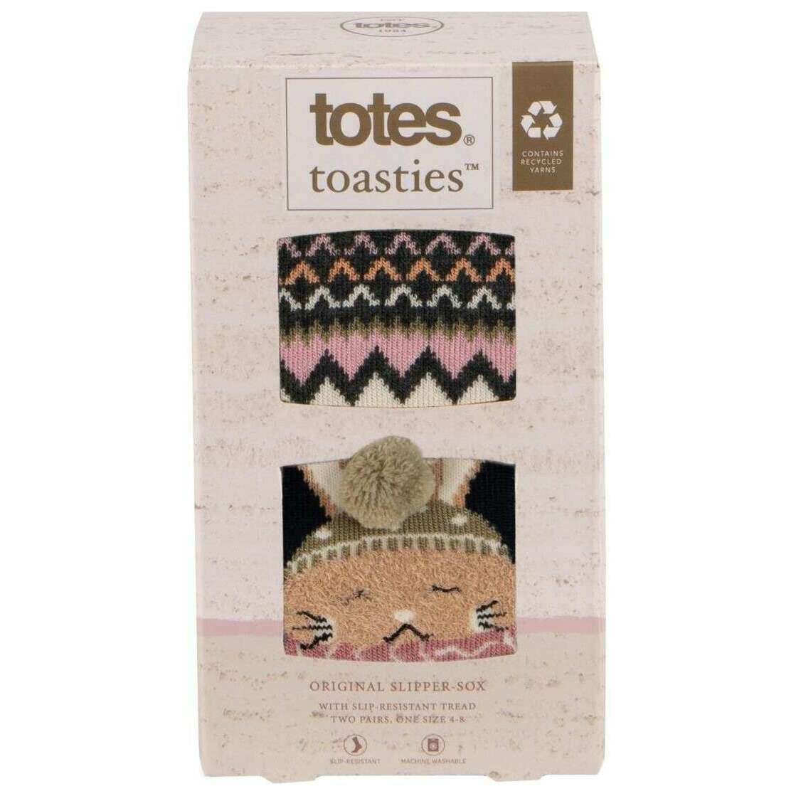These well made women's 2 pack original slipper socks from Totes Toasties come in a rabbit/fairisle navy colour and are manufactured from 64% acrylic, 16% polyester, 13% polyamide, 6% viscose and 1% metallised fibre. Also the rabbit/fairisle navy socks are designed in a fairisle pattern, It is recommended to machine wash at 30 degrees to keep these socks in good condition. 2 pack socks are value for money ensuring they are a good buy, All the socks come complete with totes toasties packaging. The Totes Toasties 2 Pack Original Slipper Socks - Rabbit/Fairisle Navy cute and festive are the perfect set of socks to keep your feet warm and cosy during the colder seasons for optimal protection from the cold. The fun decorative designs are perfect for winter. These socks have non-slip grips on the sole allowing you to walk on any surface in your house without the worry of falling and hurting yourself. Containing recycled yarns these socks make the perfect gift to your loved ones or yourself.