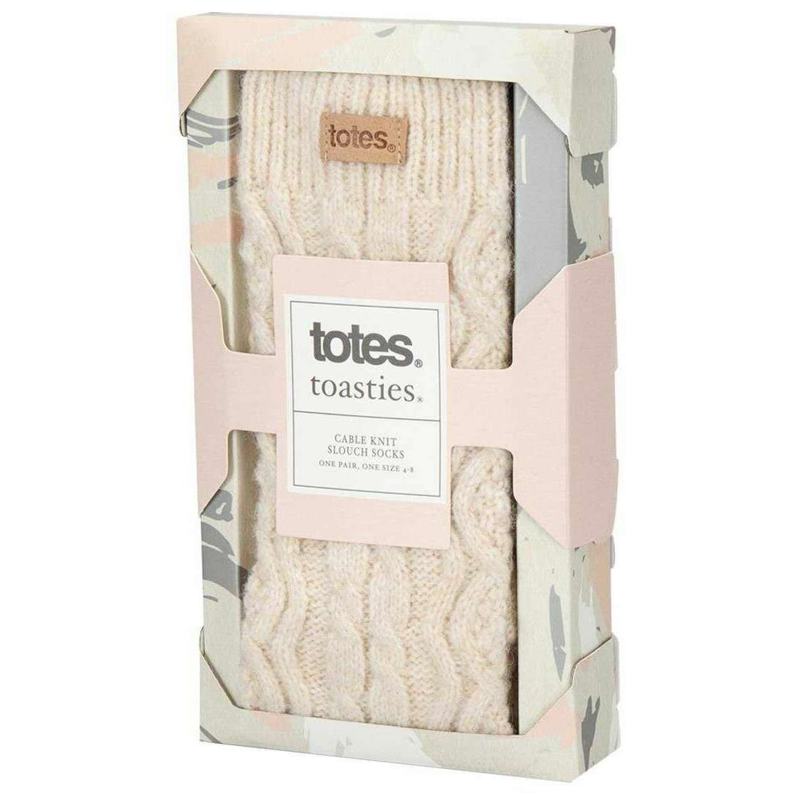 Totes Toasties Cable Knit Slouch Slipper Socks - Oat Cream