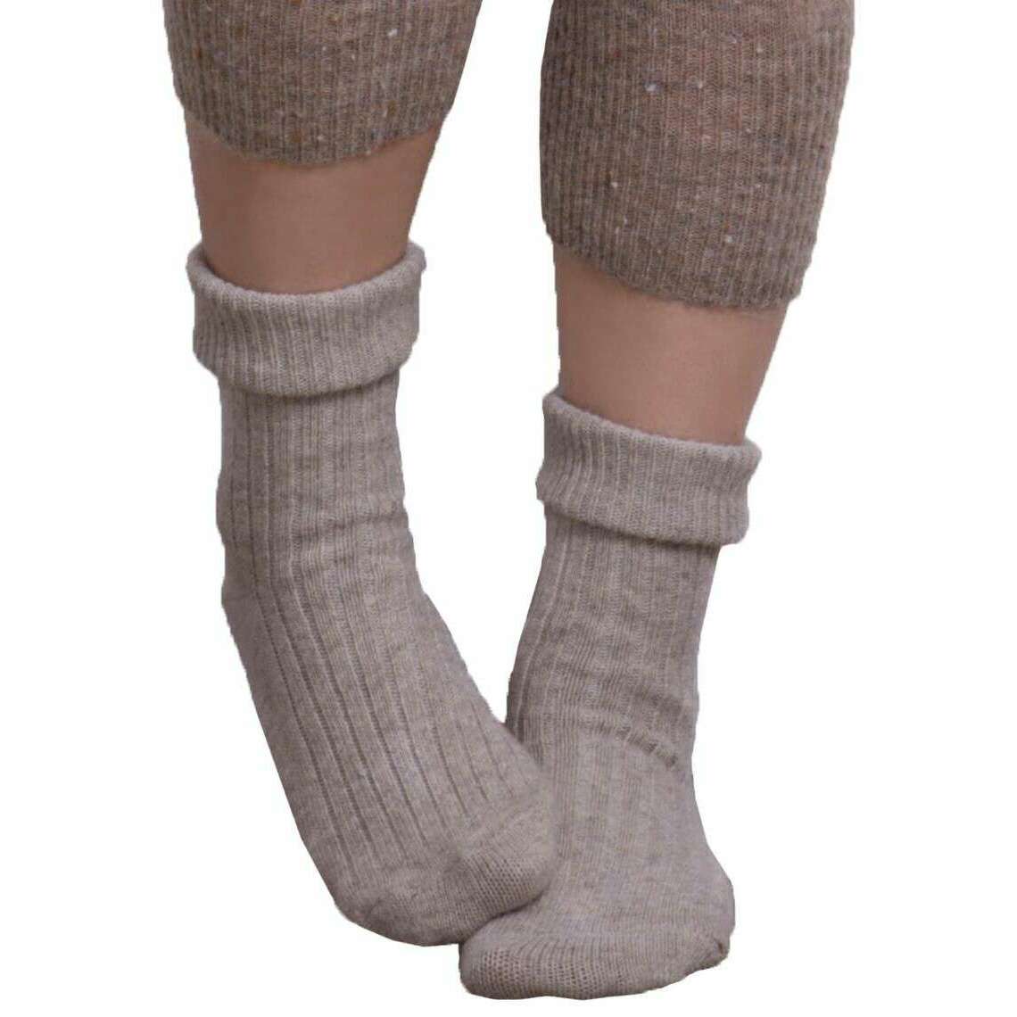 These women's cashmere blend socks have been made from 40% viscose, 33% polyamide, 20% wool, 5% cashmere and 2% elastane, featured in a grey colour and are from the brand Totes Toasties. Also the mink grey socks are designed in a plain pattern, It is recommended to hand wash only to keep these socks in good condition. All the socks come complete with totes toasties packaging. The Totes Toasties Cashmere Blend Socks - Mink Grey feature a turned over top with a ribbed design for a classic cosy look. Crafted with a cashmere and wool blend these socks offers optimal protection from the cold on those wintery icy nights, whilst being ultra soft on your feet. Pair with your favourite set of pyjamas for a complete look whilst cuddling up on the sofa. Great for gifting to your loved ones this winter.