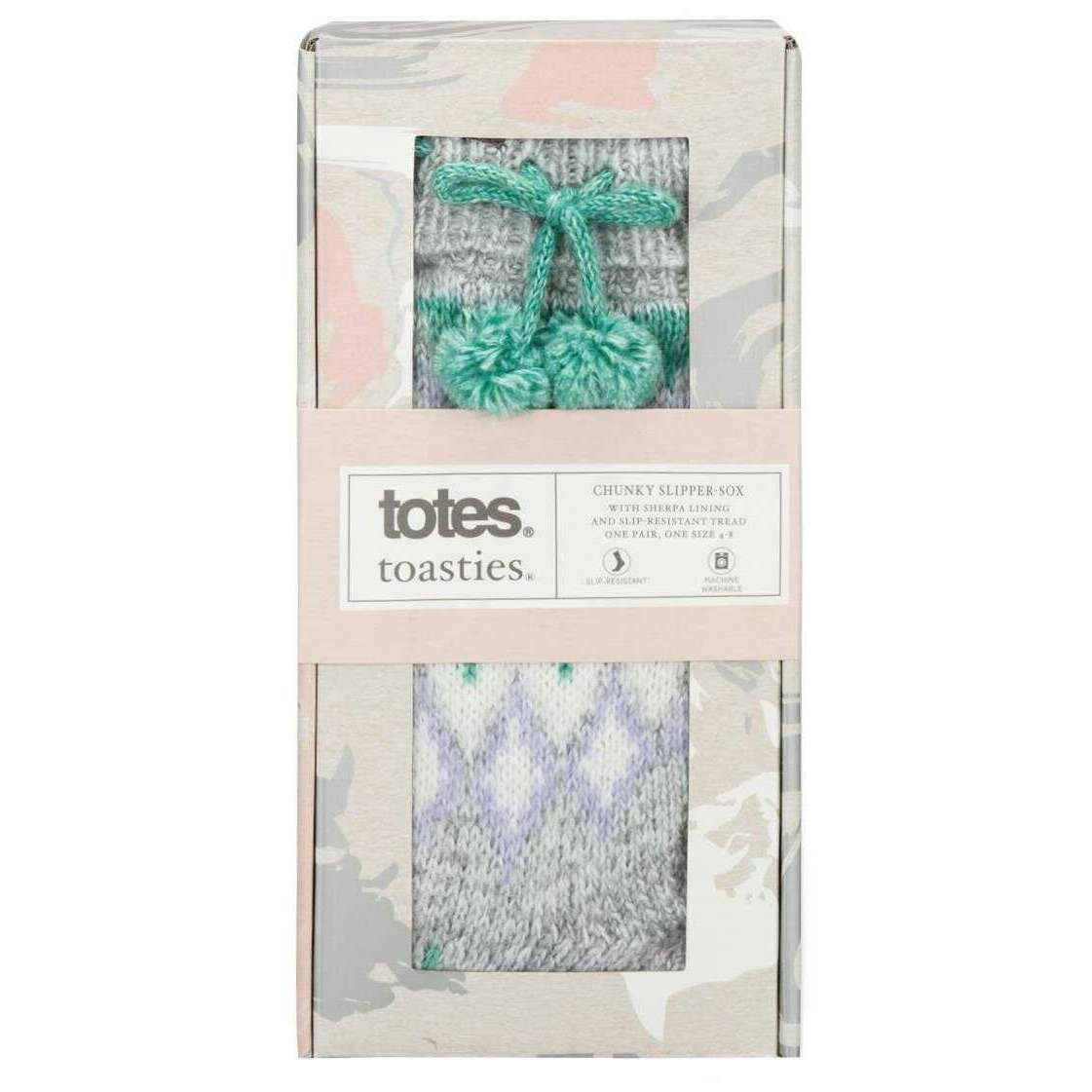 Totes Toasties Fair Isle Chenille Slipper Socks - Grey/Green/Purple