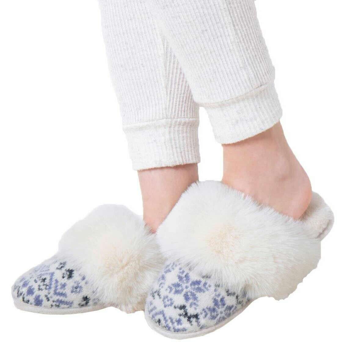 Totes Toasties Fair Isle Knit Mule Slippers - Blue
