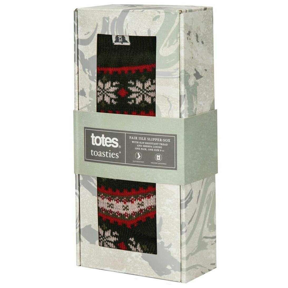 Perfect for men are these Totes Toasties red fair isle slipper socks, they are also made from 69% acrylic, 31% polyester and 100% polyester lining. Also the red socks are designed in a fairisle pattern, It is recommended to machine wash at 30 degrees to keep these socks in good condition. All the socks come complete with totes toasties packaging. The Totes Toasties Fair Isle Slipper Socks - Red are the perfect pair to either do chores around the house whilst keeping your feet nice and cosy or just to have on when relaxed on the sofa watching your favourite winter movie. This fair isle design is festive and gives a Christmas touch and has been crafted with sherpa lining for optimal warmth. This pair is the perfect gift to your loved or to yourself!