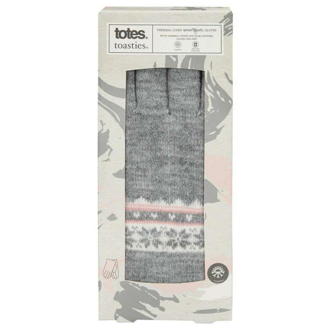 Totes Toasties Fair Isle Stretch Knitted Smartouch Gloves - Grey