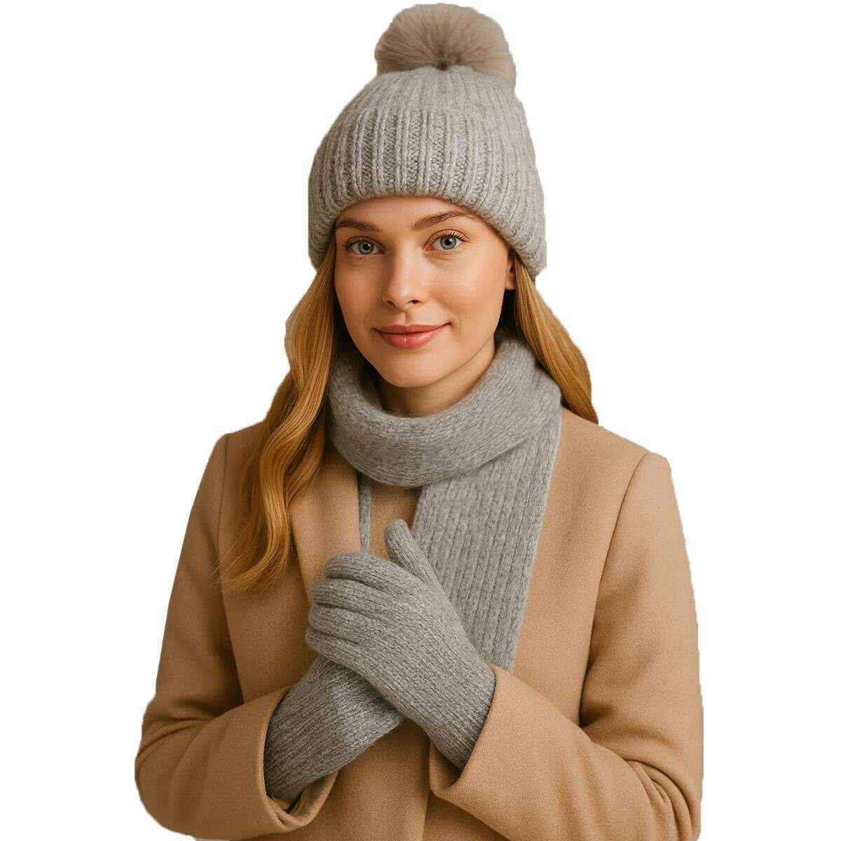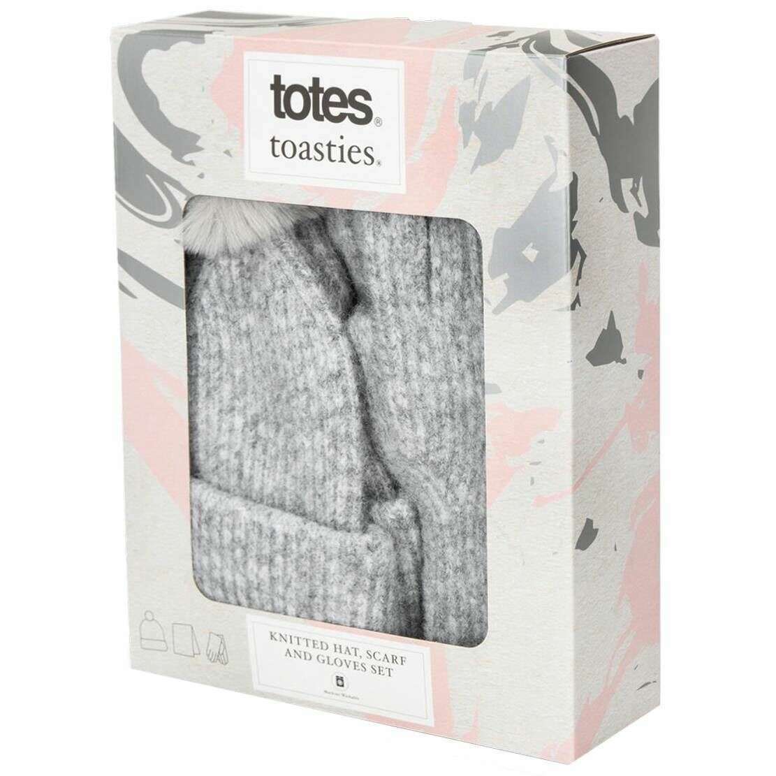 Totes Toasties Knitted Hat Scarf and Glove Gift Set - Grey
