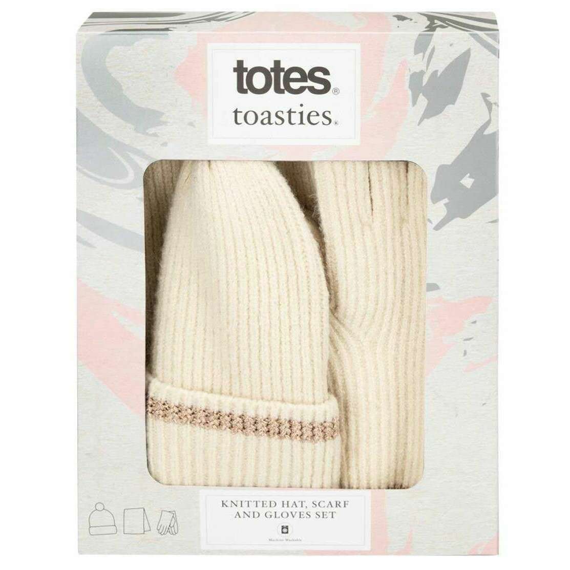 Totes Toasties Knitted Hat Scarf and Glove Gift Set - Oat Cream