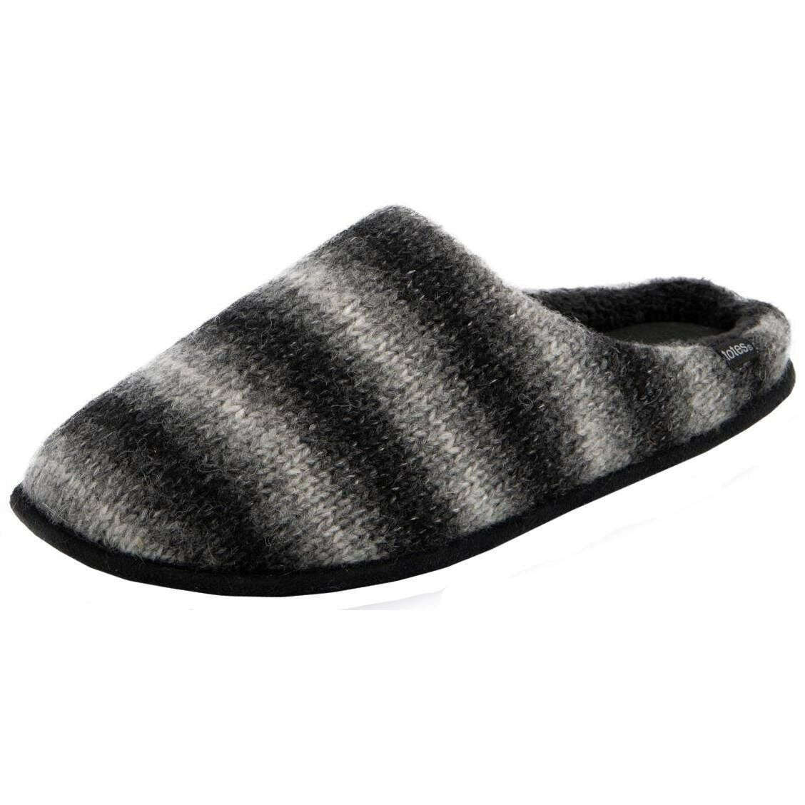 Designer Totes Toasties have brought you these men's 72% acrylic, 20% wool and 8% alpaca wool top and 100% polyester lining slippers using grey tones. Also the grey slippers are designed in a 2-tone pattern, It is recommended to hand wash only to keep these slippers in good condition. All the slippers come complete with totes toasties packaging. The Totes Toasties Knitted Ombre Mule Slippers - Grey features a classic and well-loved design that will become a frequently worn piece in your collection. These slippers have a soft and warm lining keeping your feet nice and toasty whilst roaming around the house with added memory foam and a durable sole for comfort and support. The slide on mule design allows for easy removal when wanting to let your feet breathe. Make these your winter staple!
