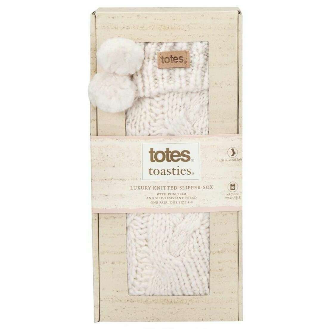Totes Toasties Luxury Chunky Knit Slipper Socks - Cream