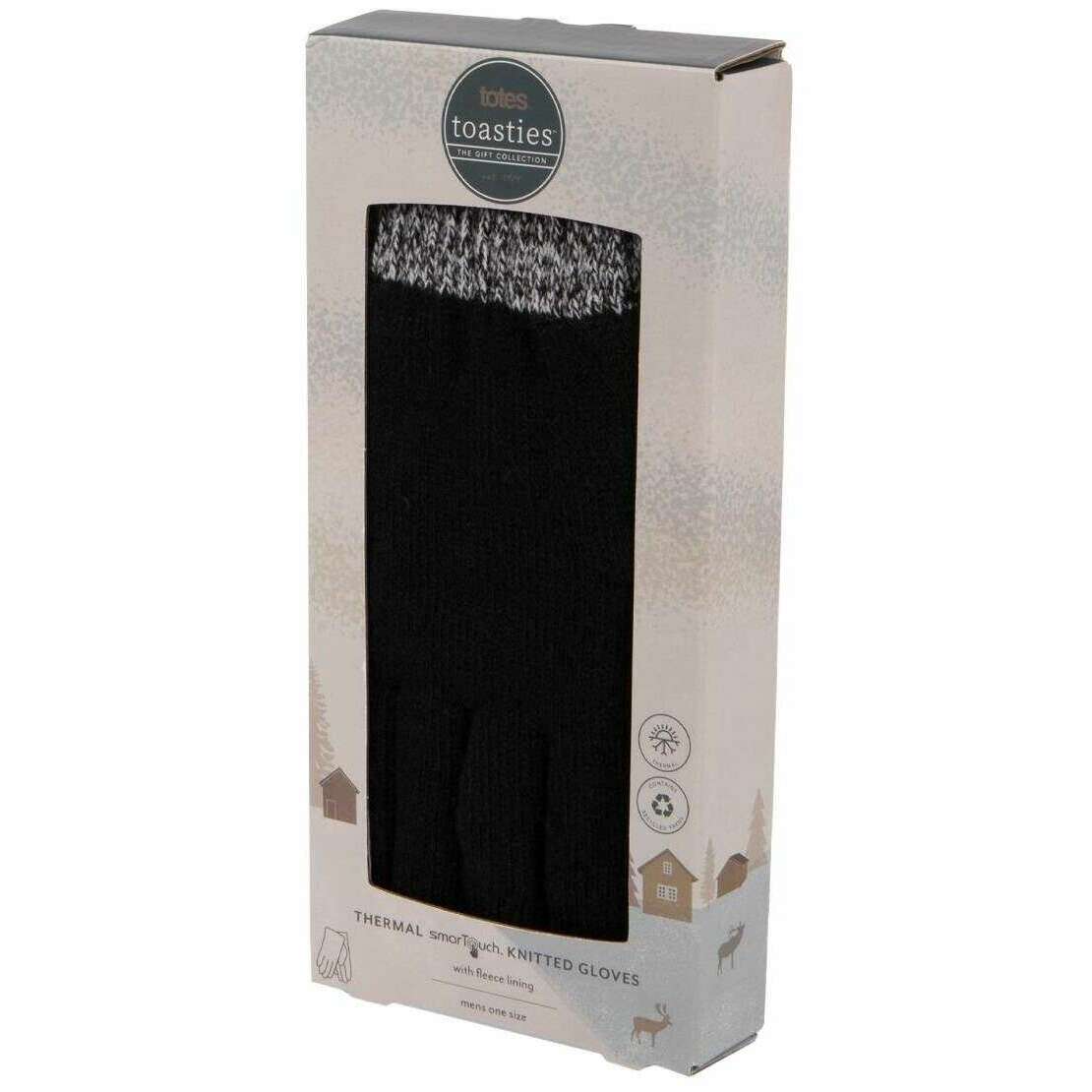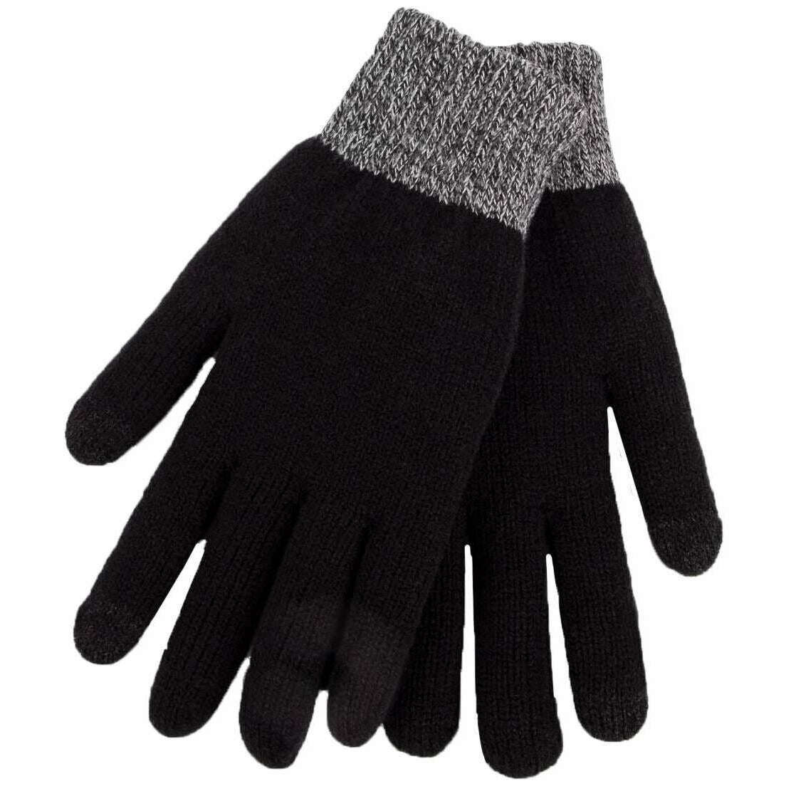 Totes Toasties Stretch Knitted Smartouch Gloves - Black/Grey