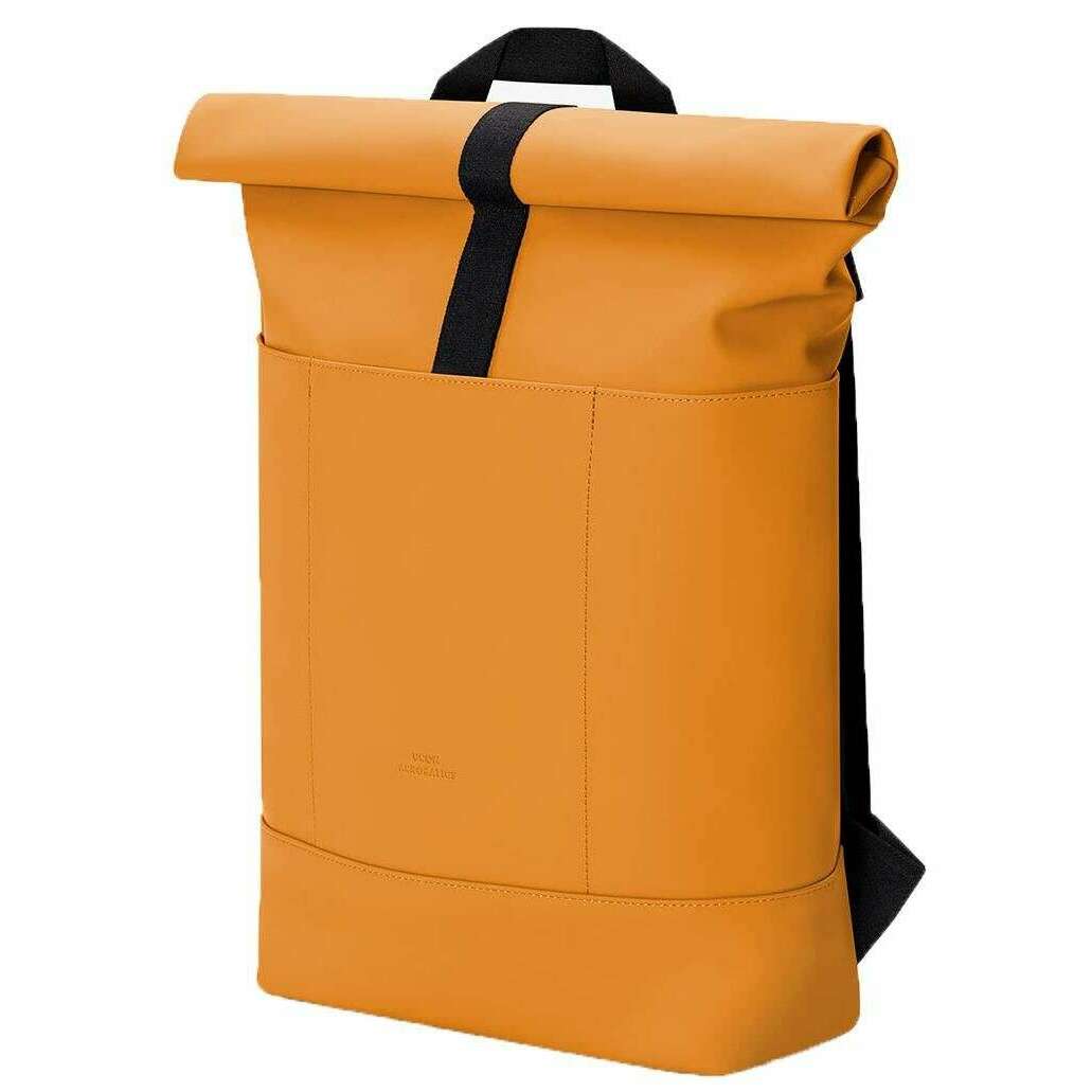 This unisex lotus hajo medium backpack by the brand Ucon Acrobatics is made from 36% polyurethane, 40% polyester, 14% calcium carbonate and 10% wood fiber and is showcased in yellow. It measures 50cm(height) x 30cm(width) x 12cm(depth). All the bags come complete with ucon acrobatics packaging. The Ucon Acrobatics Lotus Hajo Medium Backpack - Honey Mustard Yellow is designed for versatility and convenience and has been expertly manufactured from sustainable materials making this backpack waterproof and completely vegan, saving the planet one bag at a time. A tree is also planted with every bag purchase. Featuring an interior compartment with built-in shock absorber that fits a 16,4" laptop or tablet. You also enjoy the convenience of two external side pockets and two internal mesh pockets. With reinforced back with padding and adjustable shoulder straps you are guaranteed a comfortable fit. This vegan friendly backpack closes with hook and loop fastener and provides safety and stability for all your daily adventures.