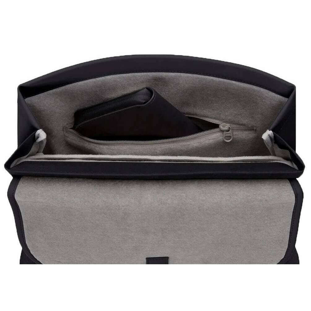 • 9L Capacity , Made from 'PUrTEX?'a Custom Ultra-Durable Tech Material , Scratch Resistant , Recycled Fashion Waste , Flap and Buckle Closure , 16.4" Interior Laptop Compartment , Two Interior Mesh Pockets , Interior Elastic Bottle Holder and Keychain , Zipper Closure Exterior Front Pocket , Padded Adjustable Straps , 3D Logo on Front