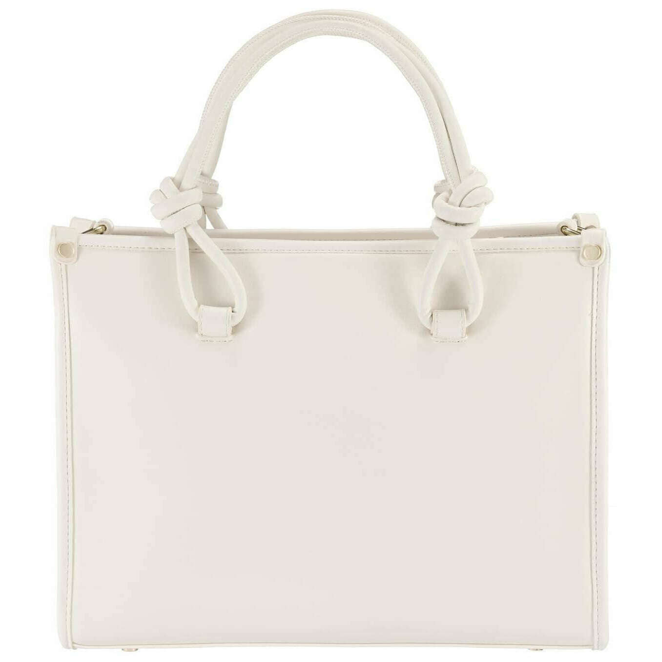 This women's aella shopping bag by the brand Valentino is made from 100% polyurethane and is showcased in white. It measures 24.5cm(height) x 32cm(width) x 11cm(depth). All the bags come complete with valentino packaging. The Valentino Aella Shopping Bag - Bianco White/Brown showcases a unique knot design which is perfect for any occasion. Its secure zipped closure ensures security while the logo and other details give it a sophisticated finish. The main compartment is spacious and features multiple compartments to help organise your essentials. It comes with an adjustable crossbody strap, detachable for effortless and stylish carrying.