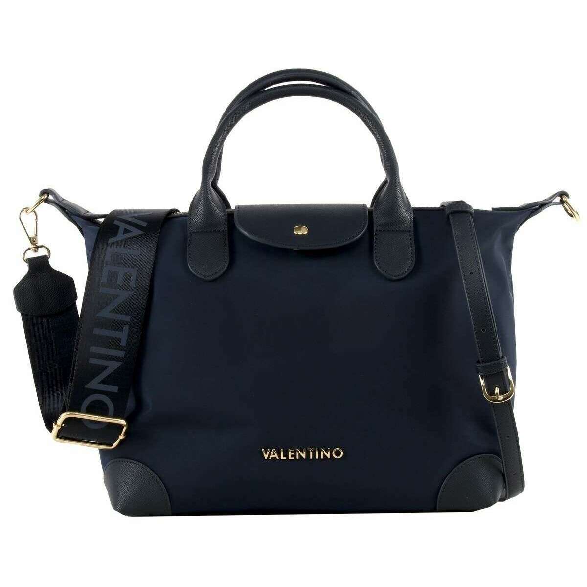 Introducing this women's jolly satchel bag by Valentino, it is manufactured from 80% polyester and 20% polyurethane in a blue colour. It measures 28cm(height) x 32cm(width) x 11cm(depth). All the bags come complete with dust tote bag. The Valentino Jolly Satchel Bag - Blue allows you to elevate your everyday style, blending timeless elegance and modern practicality. It has been thoughtfully designed for seamless organisation with multiple compartments that will give you ample space for your essentials as you go about your day. It has a secure zip top closure which ensures your things are secured inside safely while still being effortlessly accessible. The design offers traditional top handles but also has a webbed shoulder strap and faux leather so you change up the style to suit the occasion.