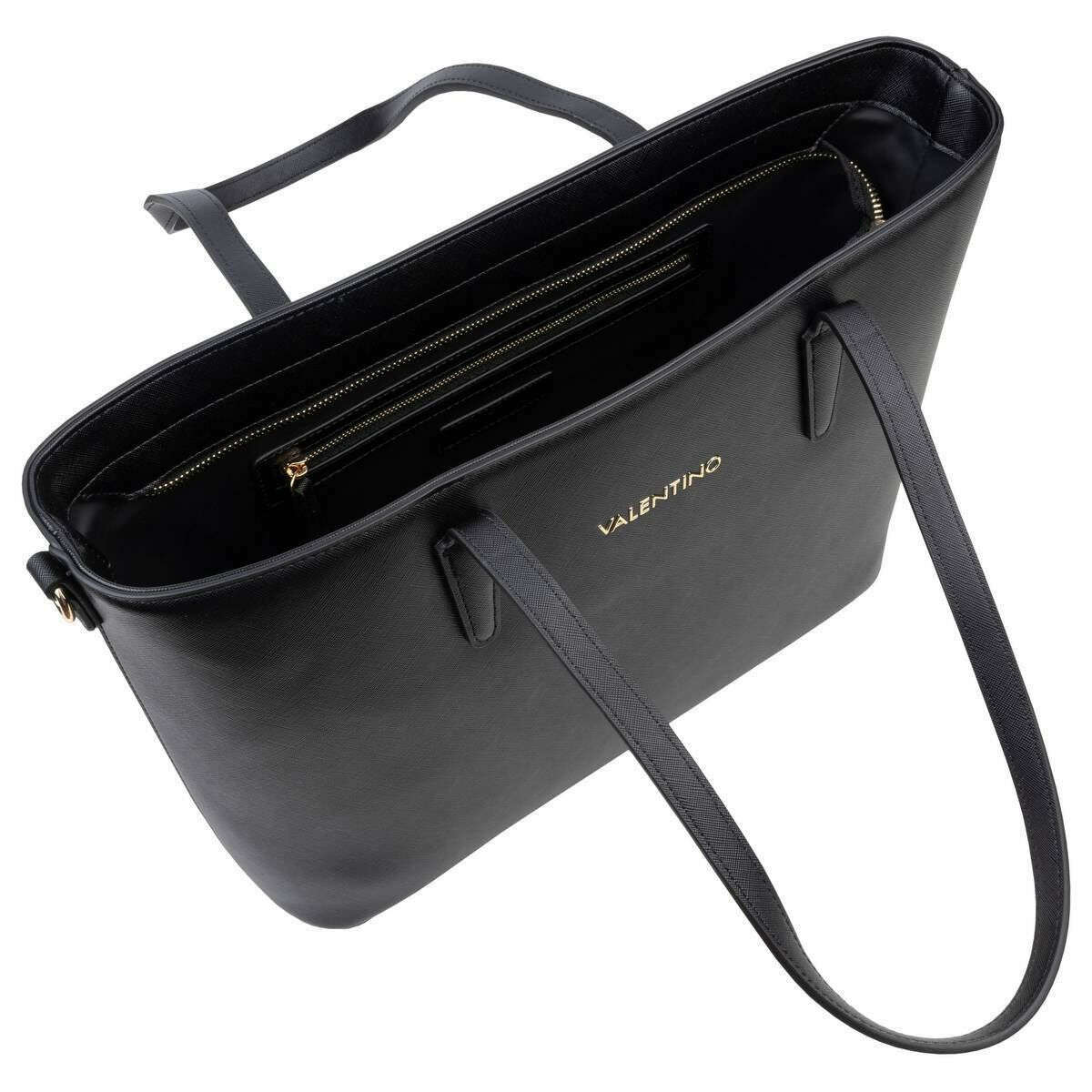 This well made women's zero re shopping bag from Valentino comes in a black colour and is manufactured from recycled polyurethane. It measures 24cm(height) x 28cm(width) x 14cm(depth). All the bags come complete in valentino packaging. The Valentino Zero Re Shopping Bag - Black showcases a minimal design which is perfect for any occasion. Its secure zipped closure ensures security while the logo and other details give it a sophisticated finish. Made from recycled materials, this piece is the perfect sustainable companion for those looking for a more mindful accessory. The main compartment is spacious and features multiple compartments to help organise your essentials. It comes with both a shoulder strap and an adjustable crossbody strap, both detachable for effortless and stylish carrying.