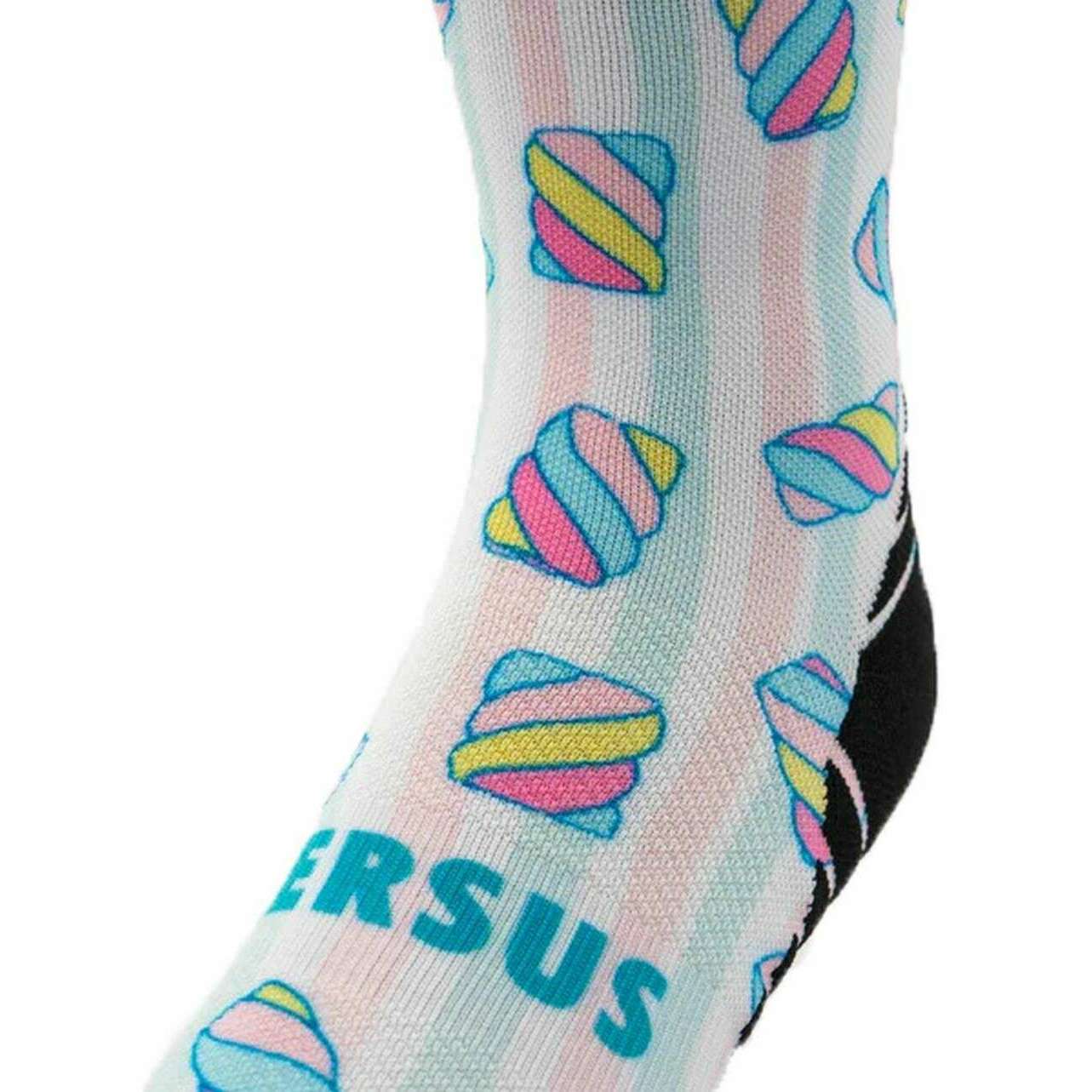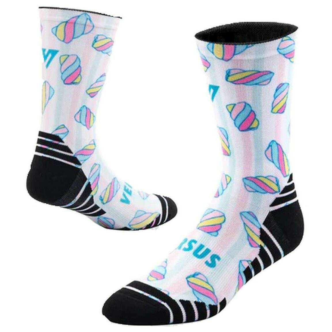 These unisex marshmallows active crew socks have been made from 93% polyester and 7% elastane, featured in a black colour and are from the brand Versus. Also the black/pink/blue socks are designed in a unique pattern, It is recommended to wash at 30 degrees to keep these socks in good condition. All the socks come complete with versus sock tags. The Versus Marshmallows Active Crew Socks - Black/Pink/Blue features style and high-quality technology, designed to support your arch and ankle throughout casual wear or intense activities. These funky running socks are breathable, comfortable and perfect for marathons and everyday runs.