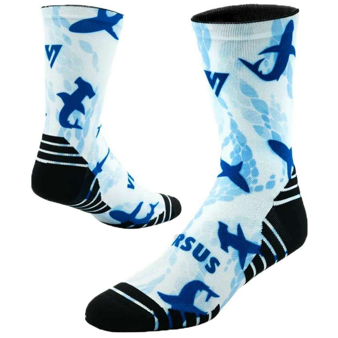 Introducing these unisex shark active crew socks by Versus, they are manufactured from 93% polyester and 7% elastane in a white/blue/black colour. Also the white/blue/black socks are designed in a unique pattern, It is recommended to wash at 30 degrees to keep these socks in good condition. All the socks come complete with versus sock tags. The Versus Shark Active Crew Socks - White/Blue/Black features style and high-quality technology, designed to support your arch and ankle throughout casual wear or intense activities. These funky running socks are breathable, comfortable and perfect for marathons and everyday runs.