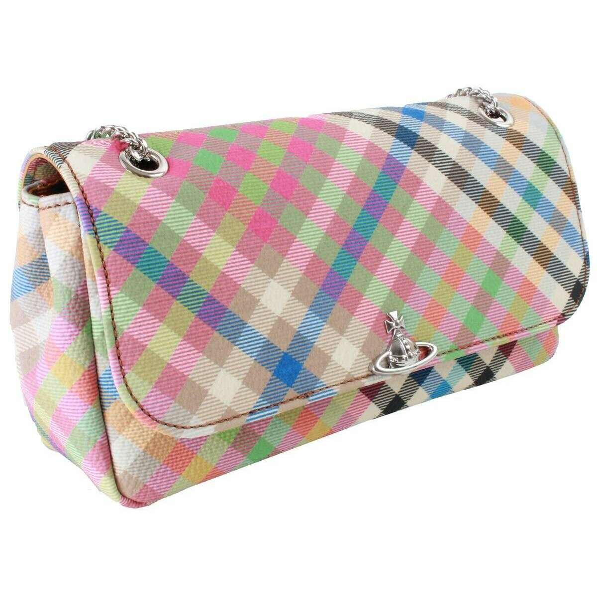 Vivienne Westwood Heather Plaid Chain Crossbody Purse - Beige/Pink/Blue