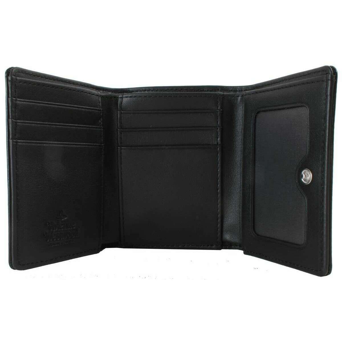 This women's mini croc embossed small frame purse has been made from 100% calf leather, featured in a black colour and is from the brand Vivienne Westwood. It measures 9cm(height) x 11cm(width) x 6cm(depth). All the purses come complete with vivienne westwood presentation box. The Vivienne Westwood Mini Croc Embossed Small Frame Purse - Black offers a contemporary and luxurious look, an ideal choice for any fashionable woman. This purse is perfect for everyone as it holds lots of storage and is great for organising due to the notes compartment, eight card slots, a photo identification window, two receipt pockets, and a clasp closure coin compartment. Finished with stylish Vivienne Westwood branding throughout and the glossy croc finish, it is an essential companion.