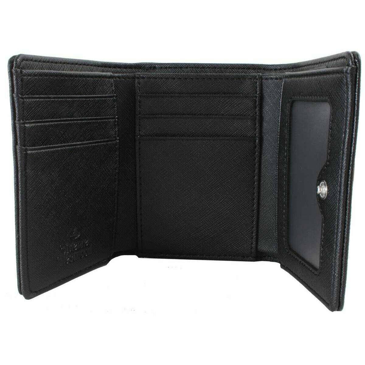 Using black 65% polyurethane and 35% cotton, this saffiano small frame purse by Vivienne Westwood is perfect for women and a must have. It measures 9cm(height) x 11cm(width) x 3.5cm(depth). All the purses come complete in vivienne westwood packaging. The Vivienne Westwood Saffiano Small Frame Purse - Black is a superb choice for your everyday purse. It opens up to give you 6 card slots, an ID window and a notes compartment. Also, an external coin section with clasp allowing you to organise your essentials for on the go ease. This purse is beautifully adorned with the iconic orb on the front making it a must have.