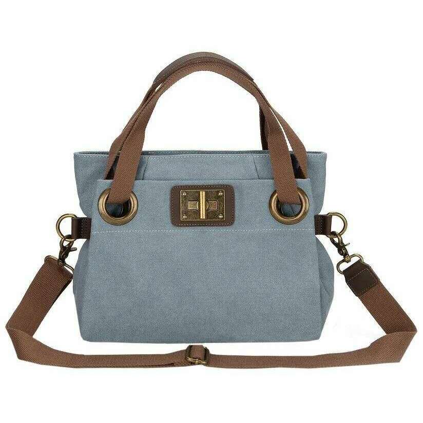 Introducing this unisex pont des arts mini cross body bag by ZEDE, it is manufactured from 100% faded cotton canvas and split cowhide leather in a blue grey colour. It measures 26cm(height) x 25cm(width) x 11cm(depth). All the bags come complete with zede packaging. The ZEDE Pont Des Arts Mini Cross Body Bag - Blue Grey is a sweet feminine everyday bag that can either be worn across the body, on the shoulder or as a handbag with the detachable adjustable strap and two handles. Featuring a front and back exterior pocket and interior pockets allow for great storage and organisation when carrying your essentials. This beautiful and chic design will elevate and complete any outfit, sure to get you compliments. Crafted from faded cotton canvas and cowhide split leather ensures a water-repellent wear.
