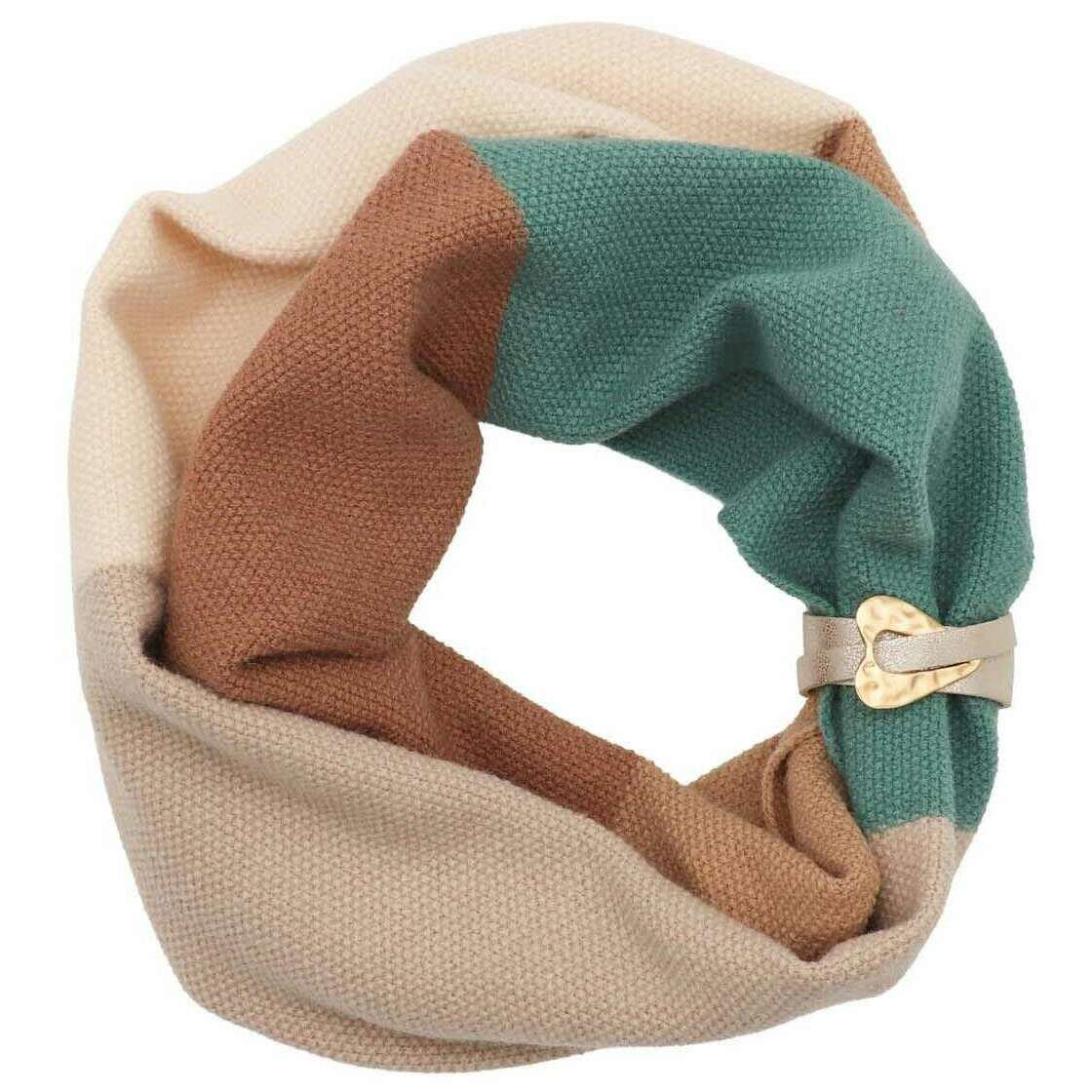Zelly Faux Leather Detail Loop Snood - Beige/Cream/Teal