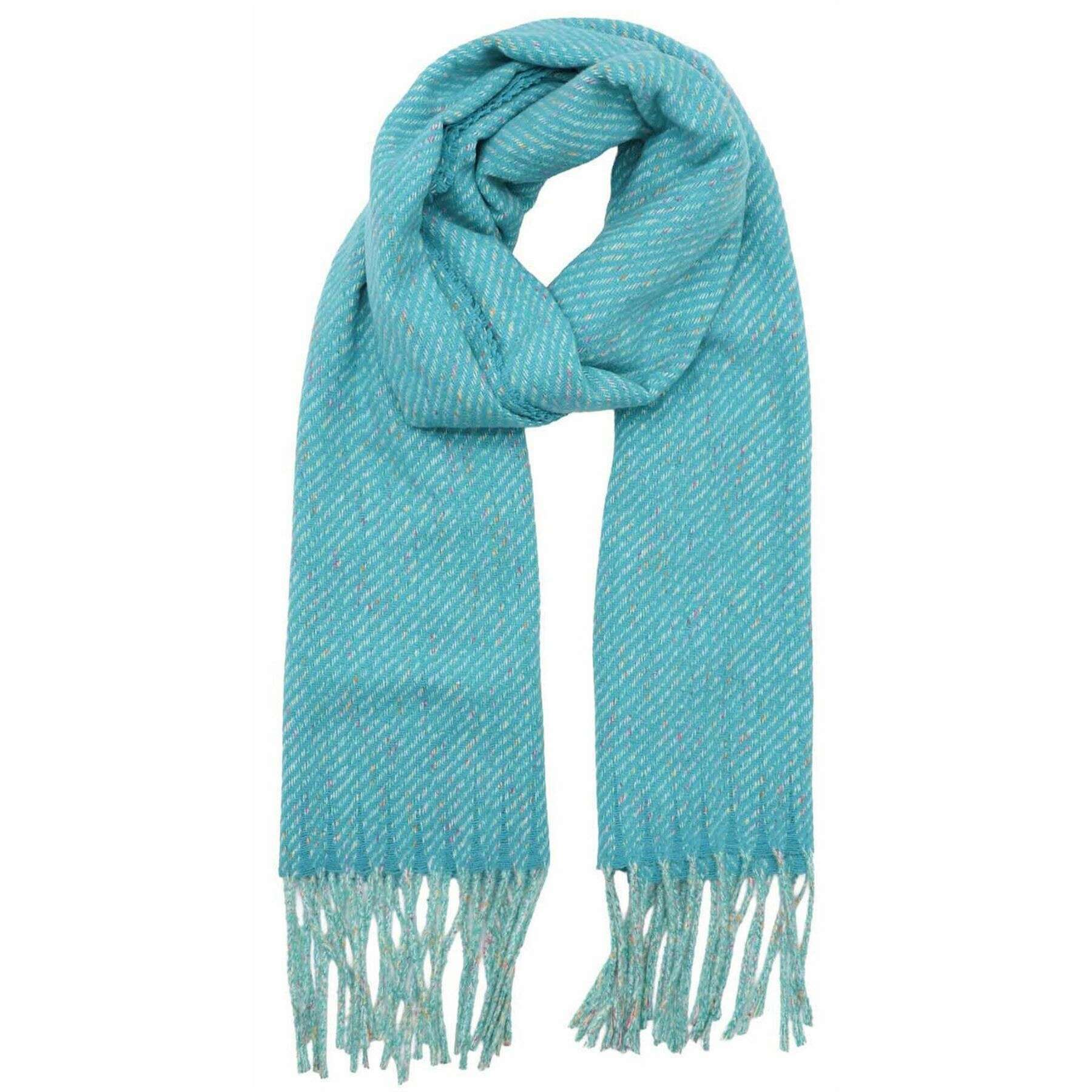 This well made women's fleck winter weight scarf from Zelly comes in a turquoise blue colour and is manufactured from 100% polyester. It measures 200cm(height) x 70cm(width). It is recommended to machine wash at 30 degrees to keep this scarf in good condition. All the scarves come complete in zelly packaging. The Zelly Fleck Winter Weight Scarf - Turquoise Blue offers a stylish accessory on those cold winter days when you just want to be warm and cosy when heading outside. The soft material will act as a much-needed barrier from those icy winds, making those outside adventures, much more enjoyable. Finished with a timeless fringed edge this scarf is a must have for your collection.