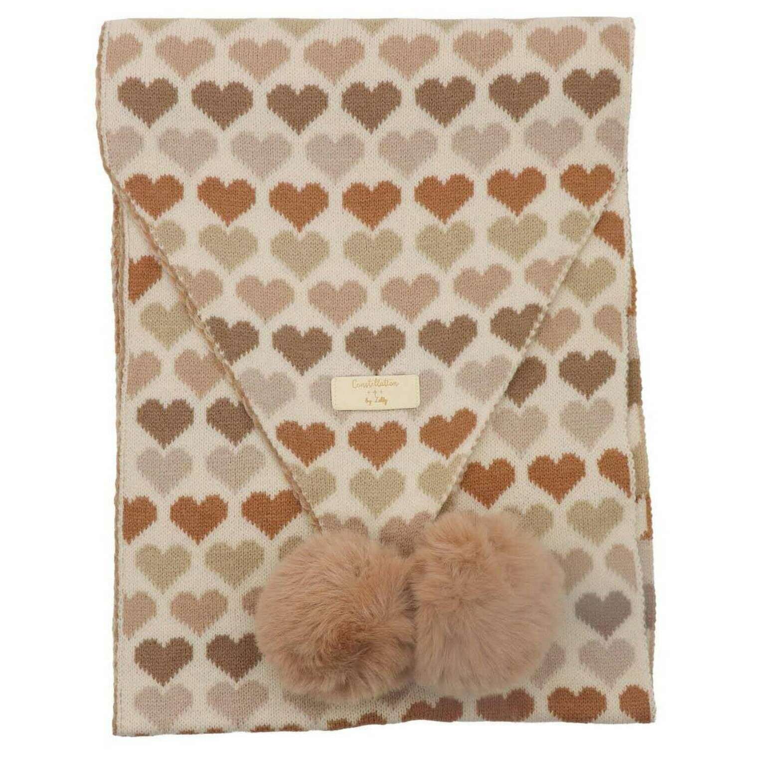 Zelly Heart Pom Pom Scarf - Beige