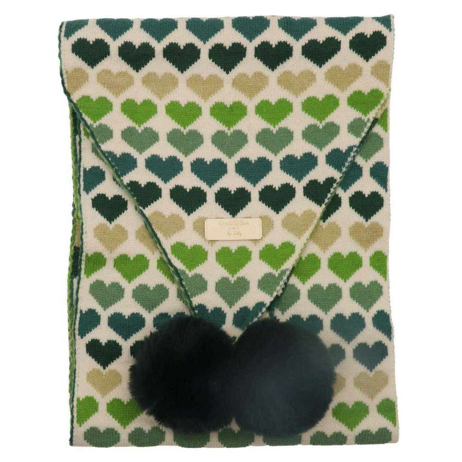 Zelly Heart Pom Pom Scarf - Green