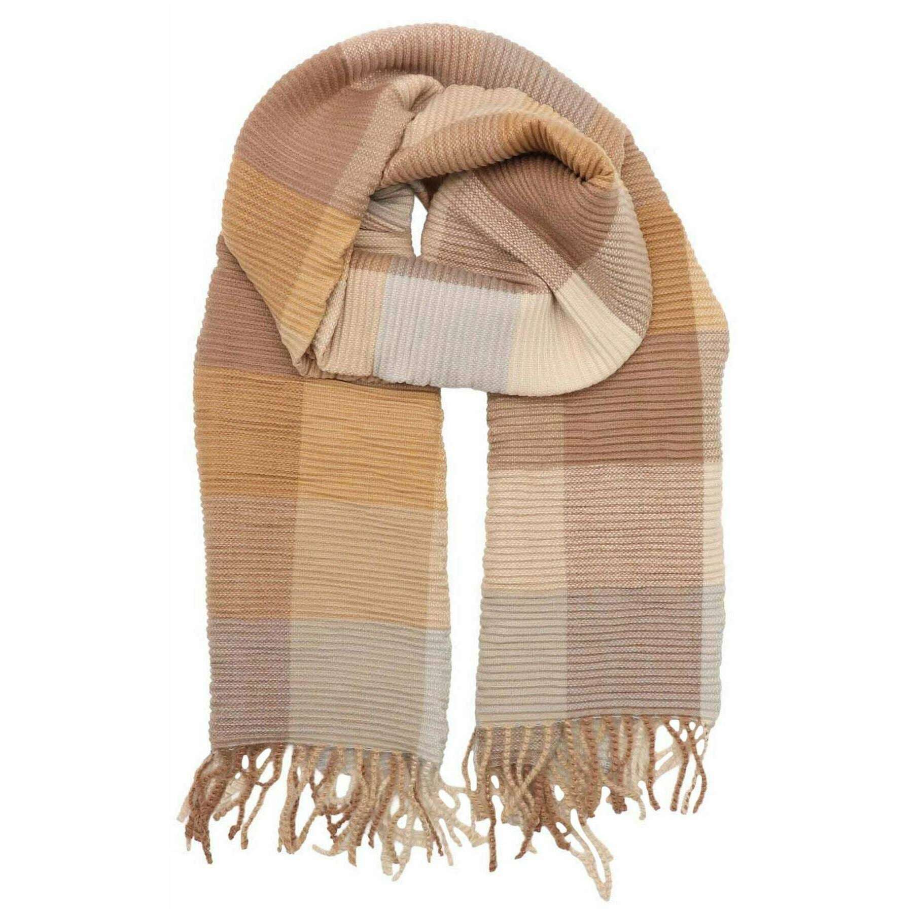 Using beige 100% polyester, this pleated detail checked scarf by Zelly is perfect for women and a must have. It measures 180cm(height) x 65cm(width). It is recommended to machine wash at 30 degrees to keep this scarf in good condition. All the scarves come complete in zelly packaging. The Zelly Pleated Detail Checked Scarf - Beige allows you to indulge in everything warm and colourful, bringing vibrant flair to your winter wardrobe. Its beautiful, tasselled ends offer a timeless touch and the super warm material will keep you wrapped up all cosy and warm like a much-needed hug. Pair this with your favourite beanie hat and gloves and you are all set to brave the cold in absolute style.